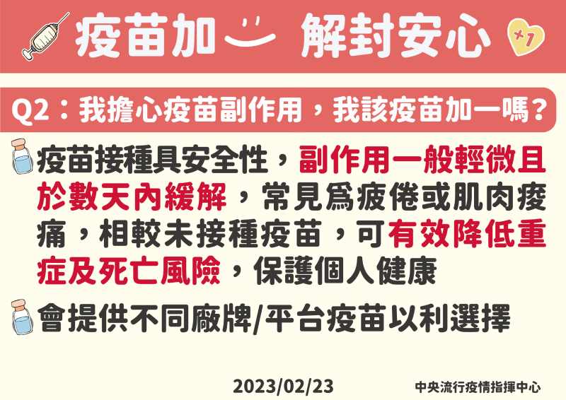 雖然疫苗接種能提升保護力,避免COVID-19侵襲,不過許多民眾仍不願施打,李秉穎提到,很多人不打疫苗是因為擔心副作用,再次強調疫苗相當的安全,副作用大部分為局部反應,發燒、全身痠痛、倦怠等等,大概兩三天內就會緩解。此外,目前國內提供NOVAVAX、單價莫德納、BNT疫苗,讓12歲以上的民眾選擇施打基礎記,而追加劑的部分,也有提供莫德納BA.4/5次世代疫苗、NOVAVAX疫苗讓6歲以上的民眾做選擇。