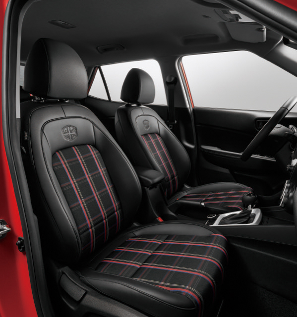 VENUE英倫版「倫敦紅」全新穿搭外觀採用經典紅色,細節處搭配白色Two-tone車頂、後視鏡,畫龍點睛的白飾門把,黑色切削雙色鋁圈,再繫上專屬英倫飾徽,帶有個性與優雅的設計就是潮流時尚魅力。既是英倫風,內在當然不可缺少迷人風情,雙前座椅專屬蘇格蘭紋及熱壓LOGO飾徽,現在入手,每一趟外出都猶如徜徉在英國街道。