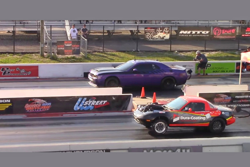 國外不時都會舉辦直線加速比賽,日前就有場比賽,一輛暴改的Miata憑藉強大動力與車重優勢輾壓眾車,就連Muscle Car也是它的囊中物。