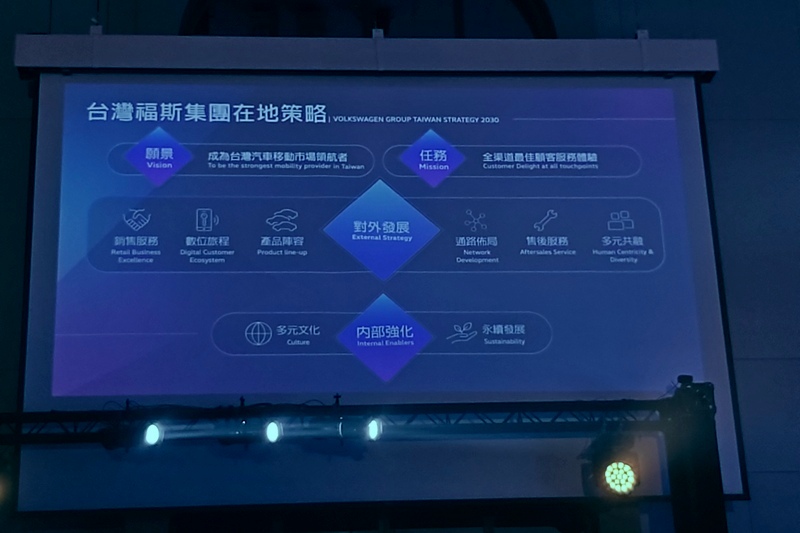 依循德國福斯集團總部New Auto 策略方針,台灣福斯集團致力成為台灣市場最令人嚮往的移動服務領導者,不僅推出新產品及服務,提供車主、消費者全方位的品牌體驗,更希望匯集四品牌資源力量,實現多元價值,創造環境與企業的永續經營。