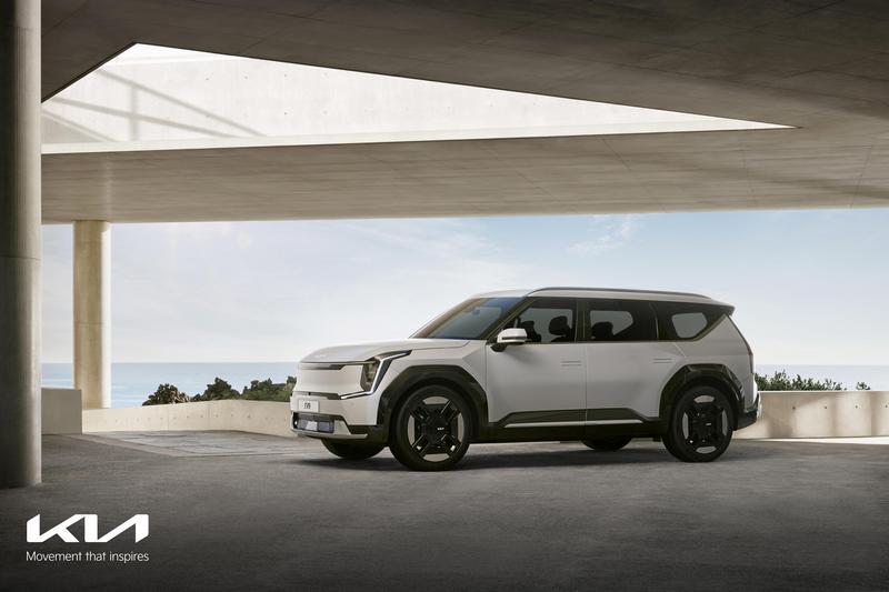 車尾與車頭造型前後呼應。 車室方面EV9過雙12.3吋螢幕將按鍵全數整合,並於中空下方提供隱藏至飾板的觸控式按鍵,而筆直的線條設計讓座艙呈現簡約清爽的氛圍,排檔移至方向盤後撥桿式設計也進一步釋放鞍座空間。
