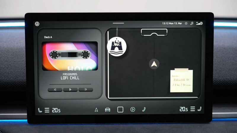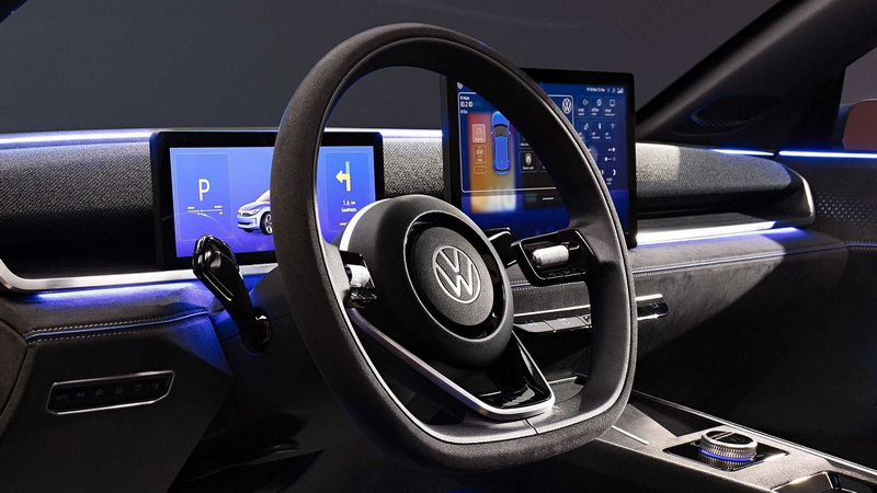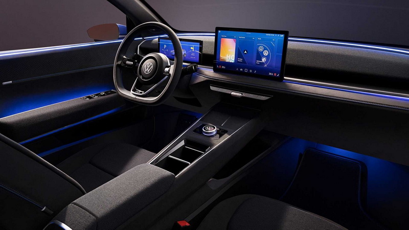 車艙與現行多數電動車相當,同樣以兩組大尺寸液晶螢幕為主導,駕駛儀表與中央螢幕分別為10.9吋及12.9吋,尤其駕駛儀表在啟動時會出現迎賓動畫,駕駛還可選擇80年代老式Beetle的類比式儀表及收音機圖式,中央鞍座相當簡潔的僅配置一組檔位控制旋鈕,實體按鍵部則則保留空調控制介面,其餘皆整合進中央觸控系統內。
