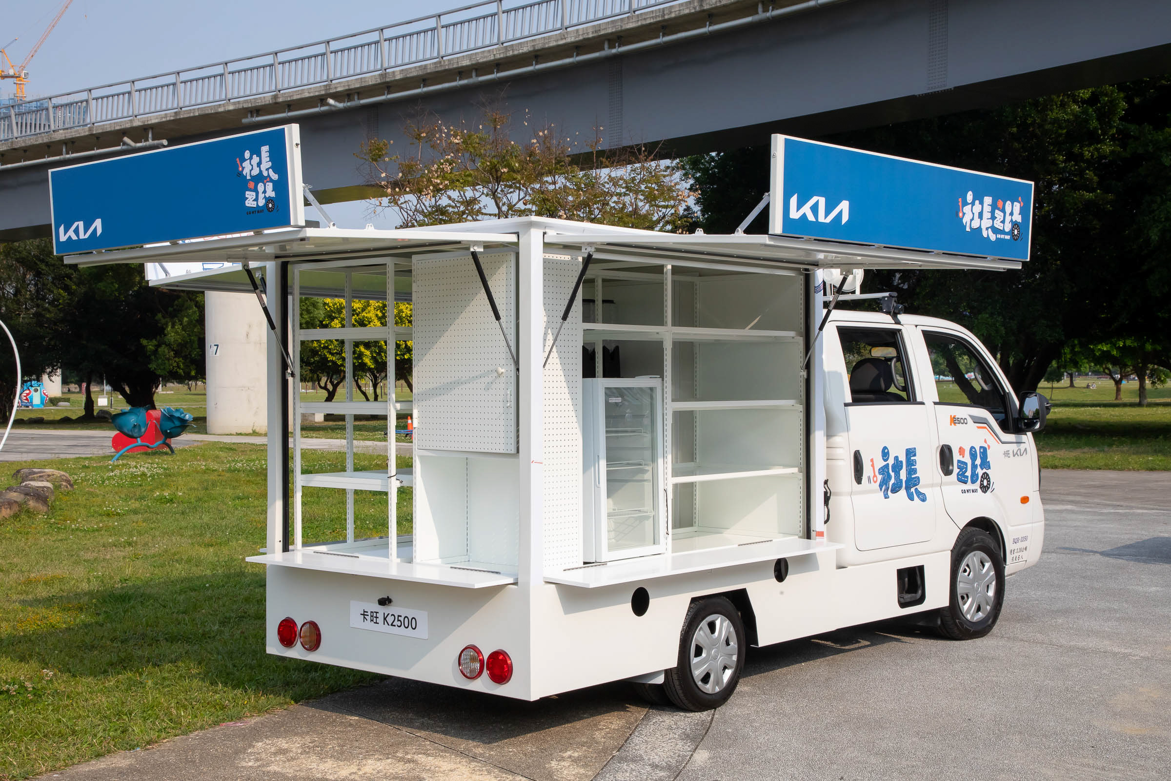Kia總代理台灣森那美起亞,此次特別與東森綜合台全新公路實境節目「社長之路」合作,節目將由三位「儲備社長們」包含李李仁、鄭元暢、劉品言角逐移動商店「旺財號」的社長一職,其中一位將獲得「旺財號」的社長之位。於本次合作中,經由重新改裝後的Kia卡旺K2500,「旺財號」化身為獨特又吸睛的移動商店,同時提供物資交流平台服務,讓民眾可透過卡旺K2500「旺財號」將家中用不到的物資重獲新生、創造新價值,也會將未成功交換的剩餘物資,全數贈予當地社福團體做公益,將愛心散播到台灣的每個角落。Kia卡旺K2500「旺財號」 車身,以富設計感的外觀結合節目「社長之路」的主視覺,加上能夠大面積開啟的鷗翼式車廂,打造出極具個性的車身外觀。寬敞的後廂空間,也巧妙改裝為多層置物空間配置,以「尚能載」的優異承載能力,滿足社長們事業的多元工作業需求。