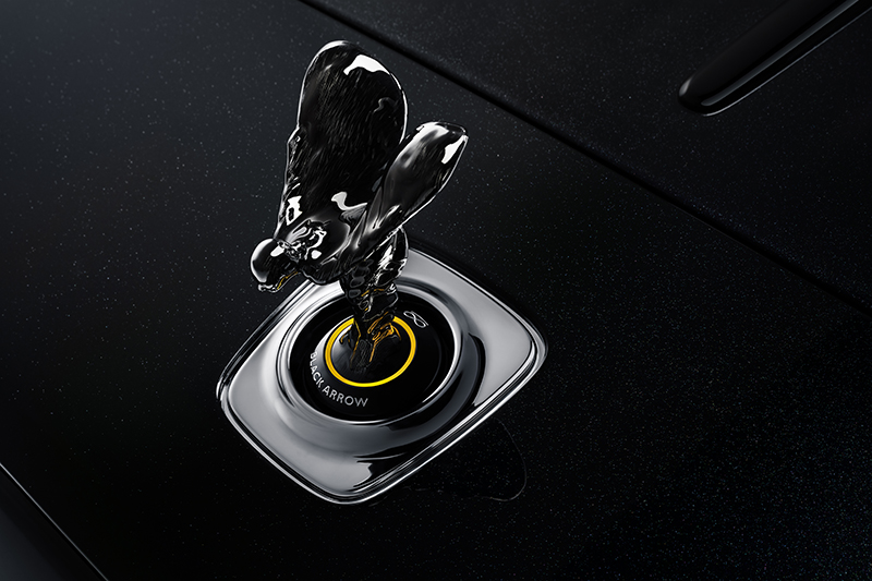Black Badge Wraith Black Arrow外觀採用了稱為Gradient Paint、獨家訂製的雙色漸層烤漆,融入了Celebration Silver和Black Diamond兩個顏色。而在Black Diamond車漆上塗上了一層具有玻璃成分的水晶漆,以增加雙色間交疊面的層次,自車頭至車尾呈現類色運動模糊所造成的效果,並且展現一種微妙的質感,其靈感就來自博納維爾鹽灘的結晶表面,須以達12小時的拋光工序,來達到如玻璃般的光潔度,而此非凡的漆面,花了Rolls-Royce共18個月測試與開發,在開發材料化學、應用技術和表面處理方面的總投資,讓 Gradient Paint 成為Rolls-Royce有史以來技術最複雜的車漆之一。