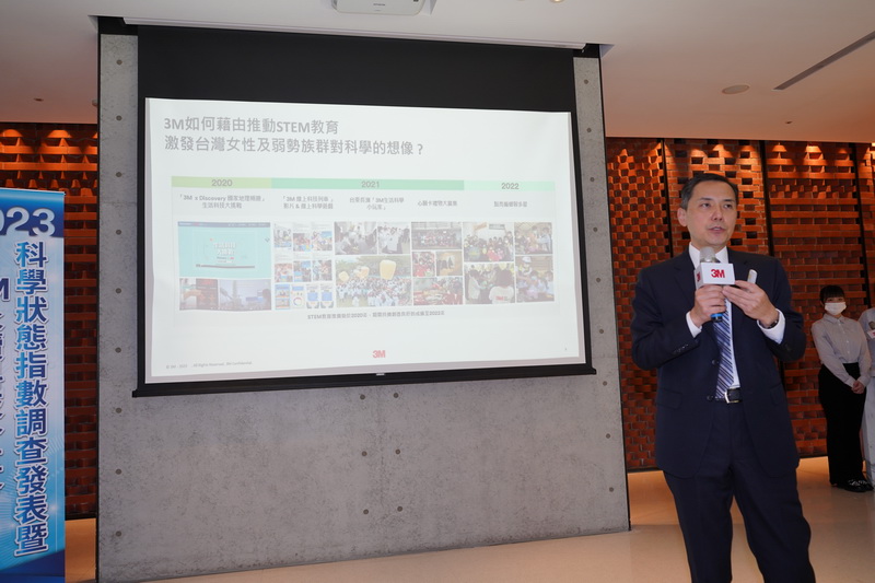 「很高興看到台灣在2023年科學狀態指數調查中,在許多永續及科學的議題上比全球其他地區有更高的關注。」美商3M台灣子公司董事總經理仝漢霖博士、同時也身兼企業道德合規及大中華區永續長在會中表示,「面對台灣2050淨零碳排的目標,全民已經達成基本的共識,然而面對少子化的事實,以及理工人才比例逐年下滑,卻成為台灣邁向永續以及科技島的隱憂。3M台灣近年來全力推廣科學的普及化與應用,主動協助政府、大學院校、企業客戶及一般消費者打開科學的視野,用更聰明、更經濟以及更有效率的方式解決複雜的問題。3M台灣也會持續透過產官學的合作與社區服務,為台灣未來創造更大的競爭力。」