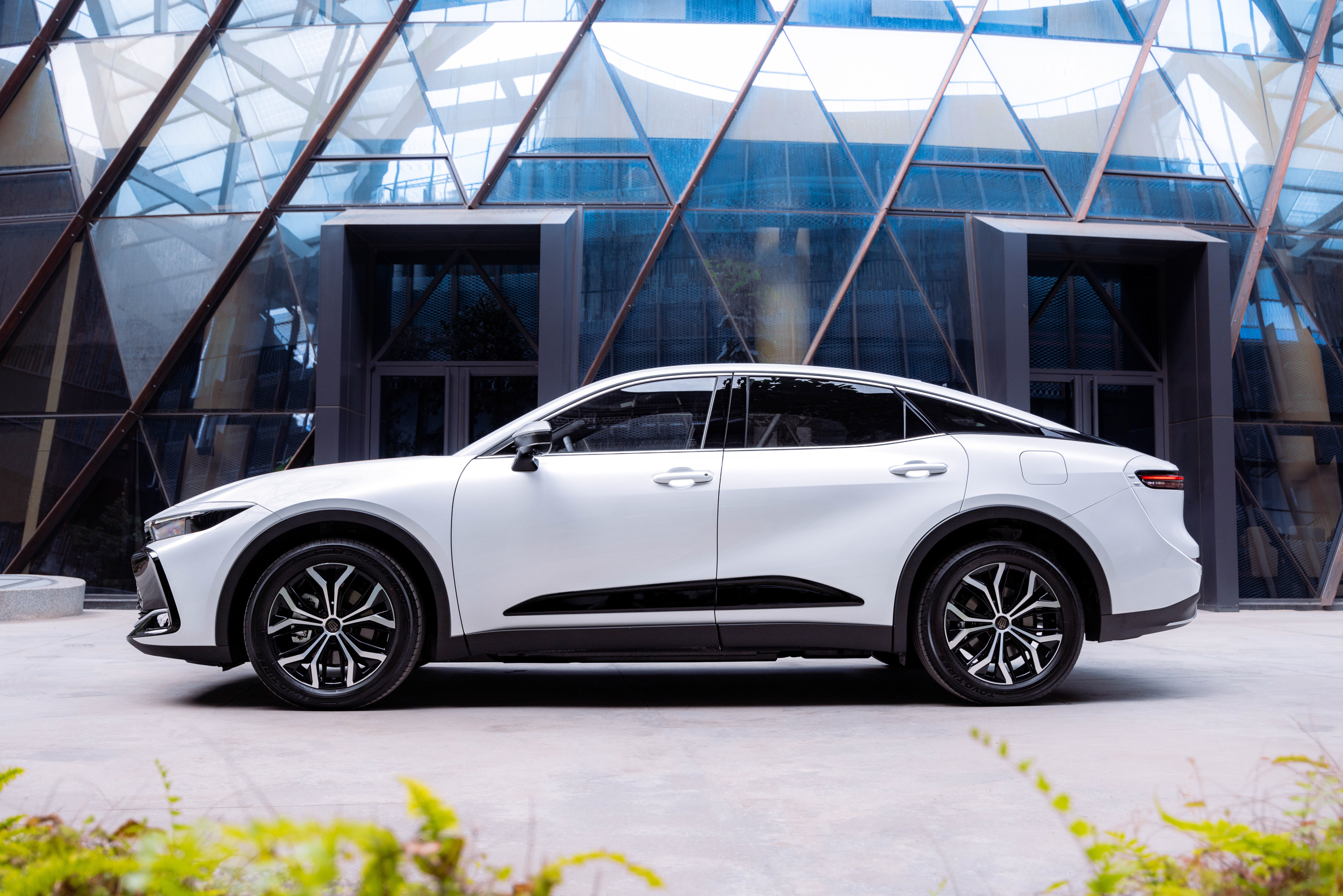 CROWN搭載LED頭燈與貫穿式日行燈,塑造如雙髻鯊銳利侵略感前視,修長的車身(4,980mm)與軸距(2,850mm),創造更為開闊的視覺感與寬敞車室空間,貫穿式的LED尾燈與頭燈相互呼應,呈現簡約有力視覺效果。皇家版更可選配獨特雙色造型塗裝,結合21吋鋁圈*1設計,增添科技與運動氣息。