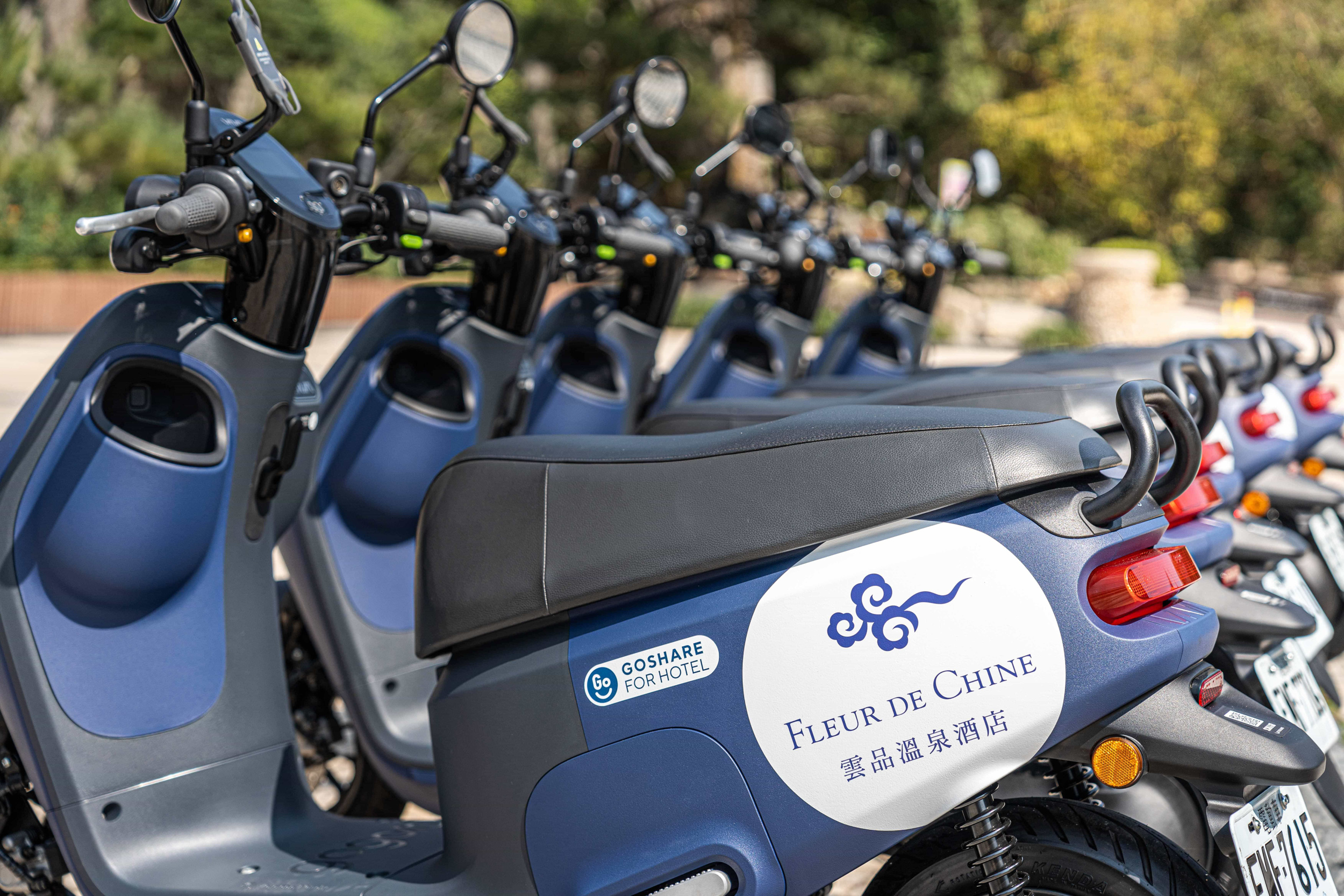 - 飯店專屬的 Gogoro 智慧電動機車車隊:採用 Gogoro VIVA MIX Belt 車款,以深藍色外觀現身,車身帶有 GoShare for Hotel 標示。