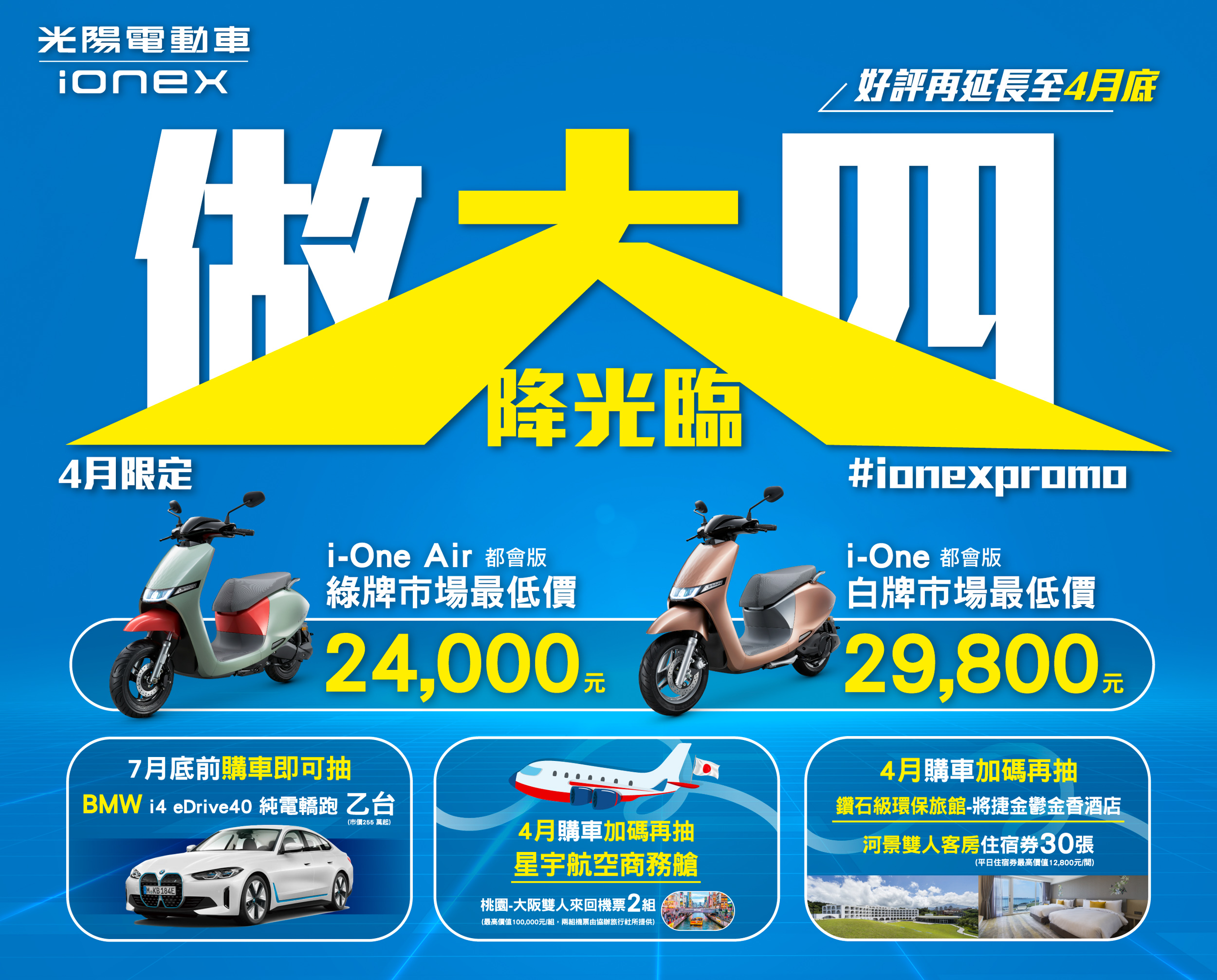 Ionex光陽電動車4月最新「做大四」大降光臨延長再加碼優惠內容