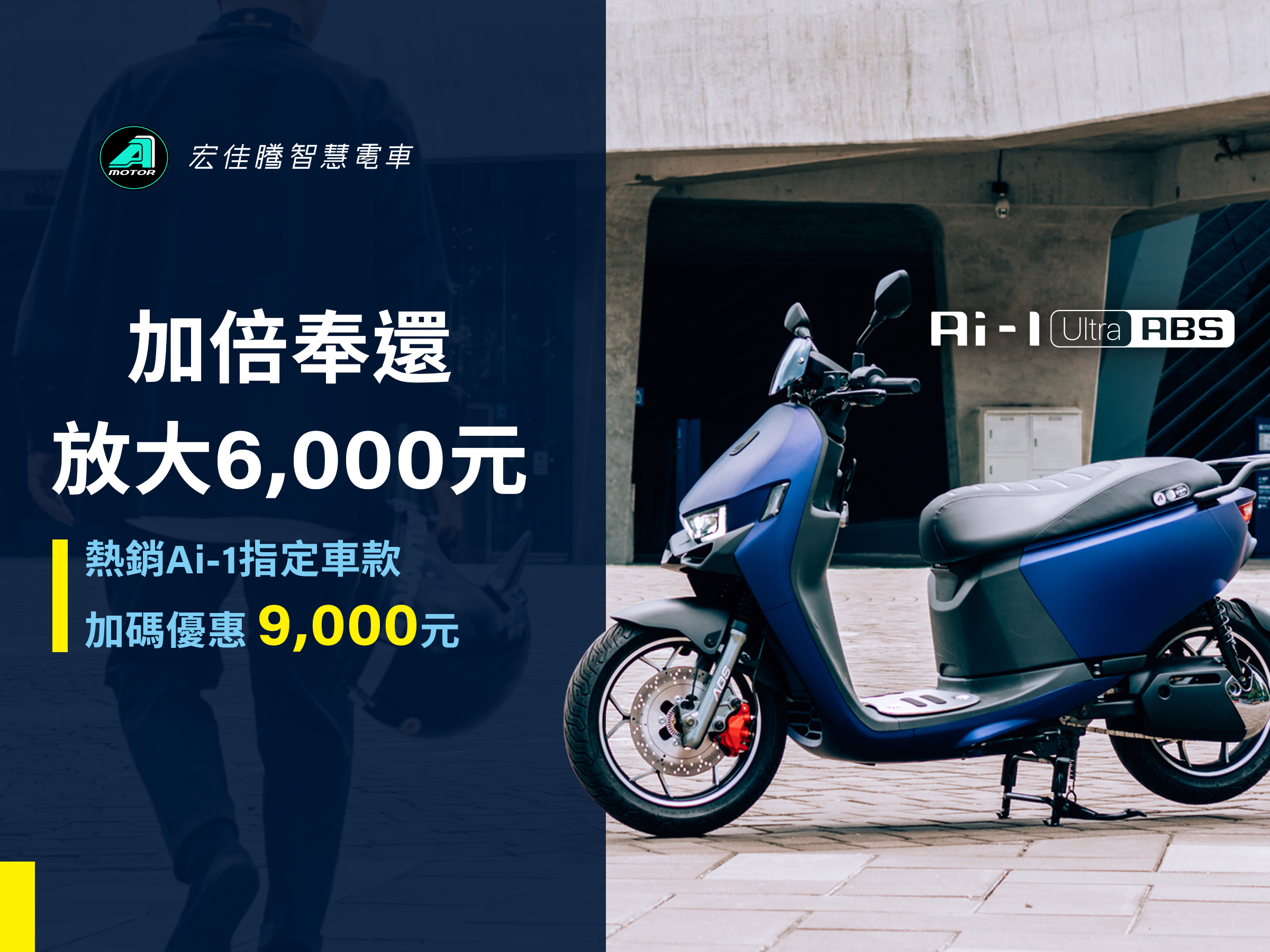 響應政府四月全民普發6,000元現金大紅包政策,為讓消費者可以更輕鬆成為「阿宏愛玩車主」,宏佳騰智慧電車率先響應加碼推出更多購車福利。活動期間(即日起至4/15止)消費者只要入主Ai-1 Ultra ABS、Ai-4 Ever指定車型,除可搭配政府汰舊換新補助享最高可折29,800元優惠外,更額外再享最高9,000元及4,500元購車優惠折扣。限定車型Ai-1 Ultra Belt與Ai-2 Gather/+,活動期間購車再加碼贈送鋁合金腳踏墊、專用前置物籃等多項原廠精品,預知更多優惠詳情,請洽官網:https://ai.aeonmotor.com.tw/pages/promotion