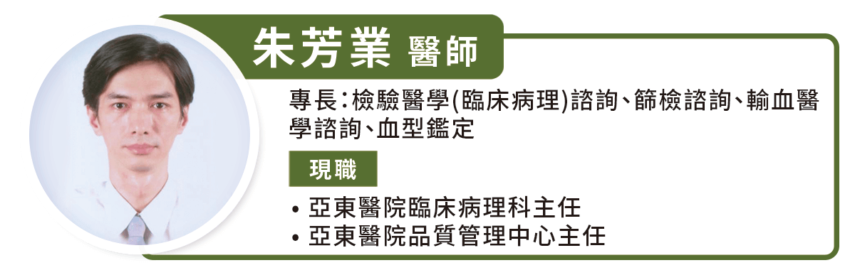 諮詢醫師:亞東醫院臨床病理科主任朱芳業