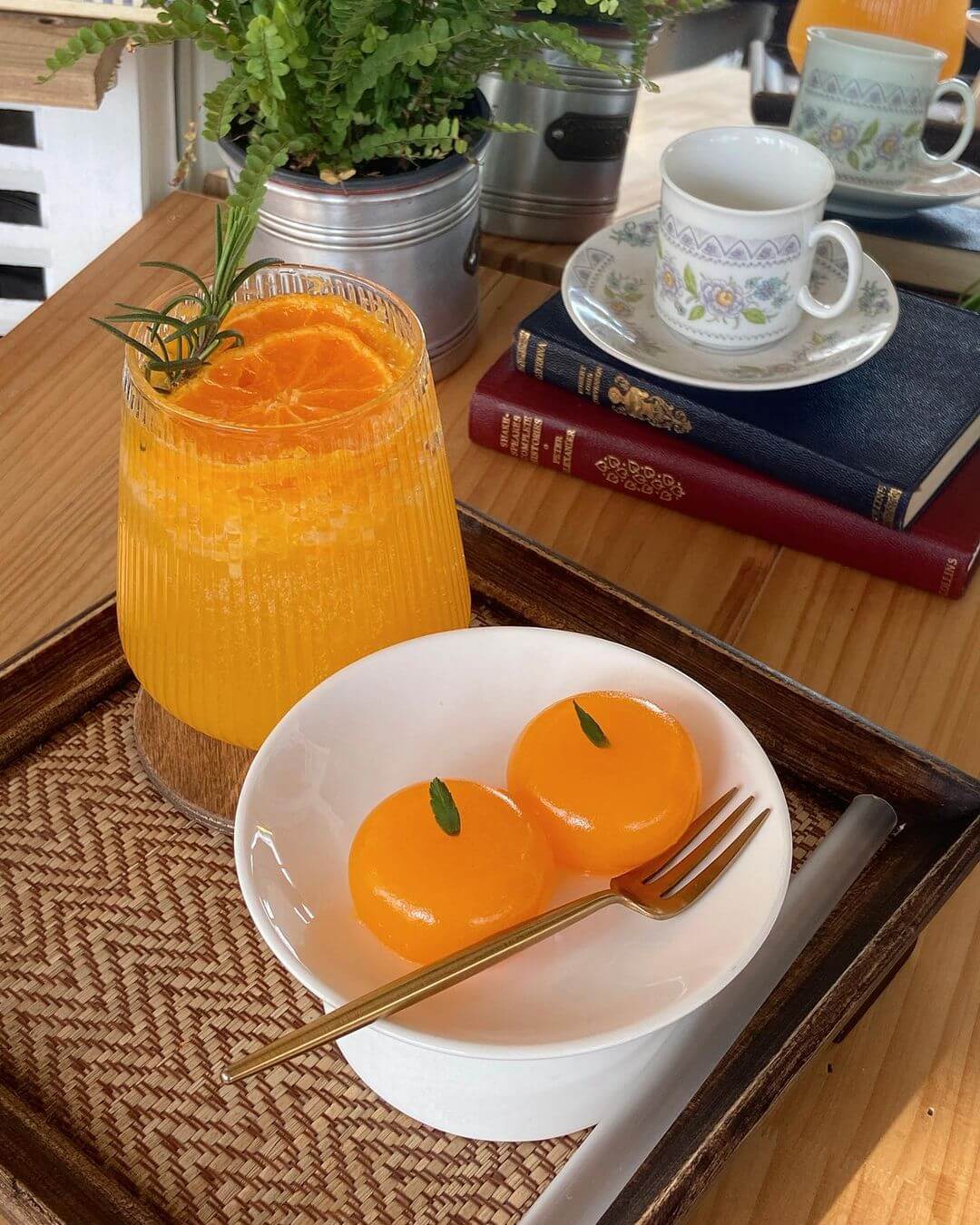 除了滿滿的橘子園之外,Cafe Tangerine Flower Attic也提供各式各樣橘子口味的甜點,像是柳橙氣泡飲、橘子口味的羊羹等等,造型軟萌到讓人捨不得吃,是身為橘子控的你到濟州島不可錯過的景點之一。