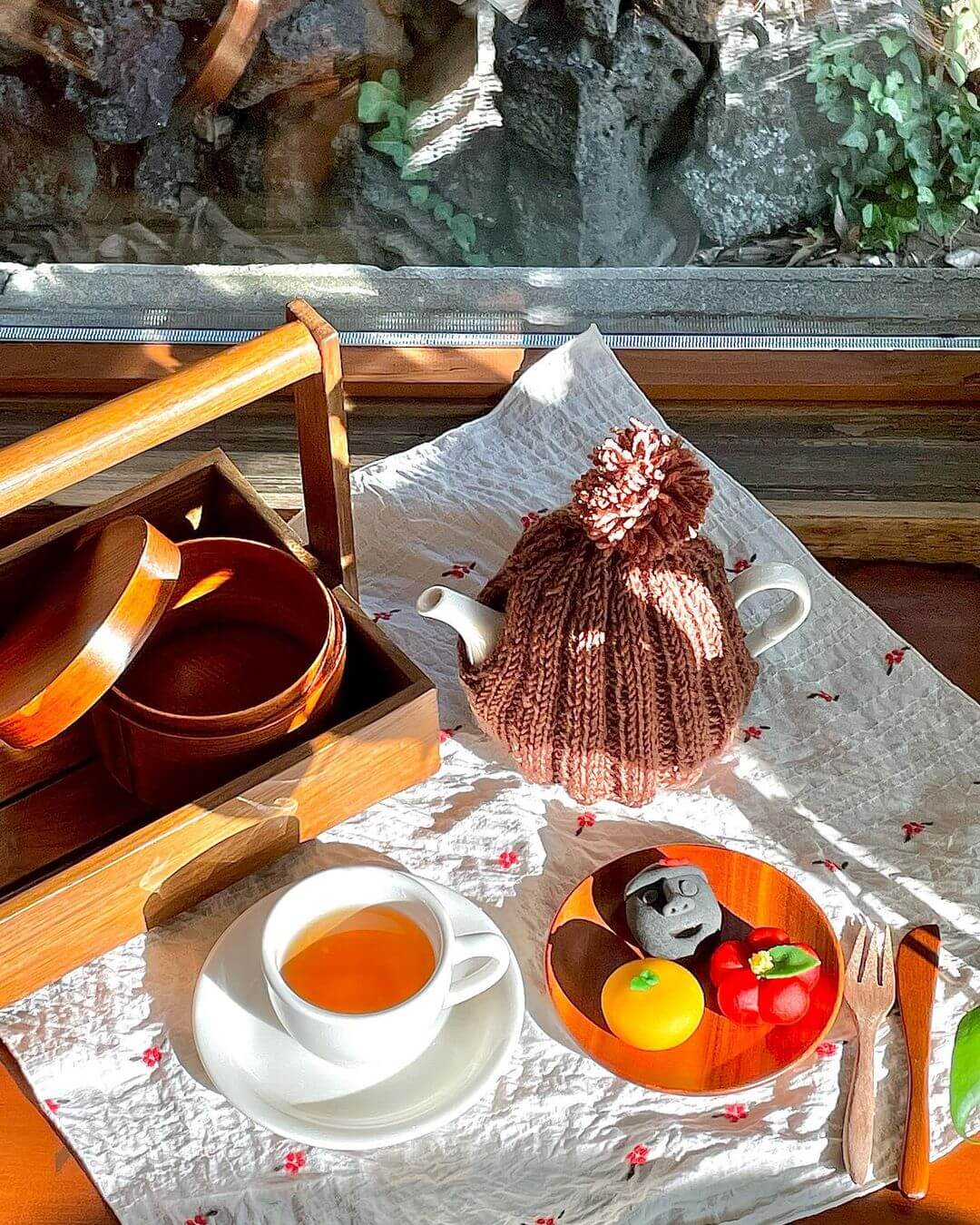這裡提供咖啡、茶及點心等可以選擇,還有濟州三大名產柑橘、山茶花和石頭爺爺造型的甜點,十分小巧可愛,很適合配著茶飲一同享用。