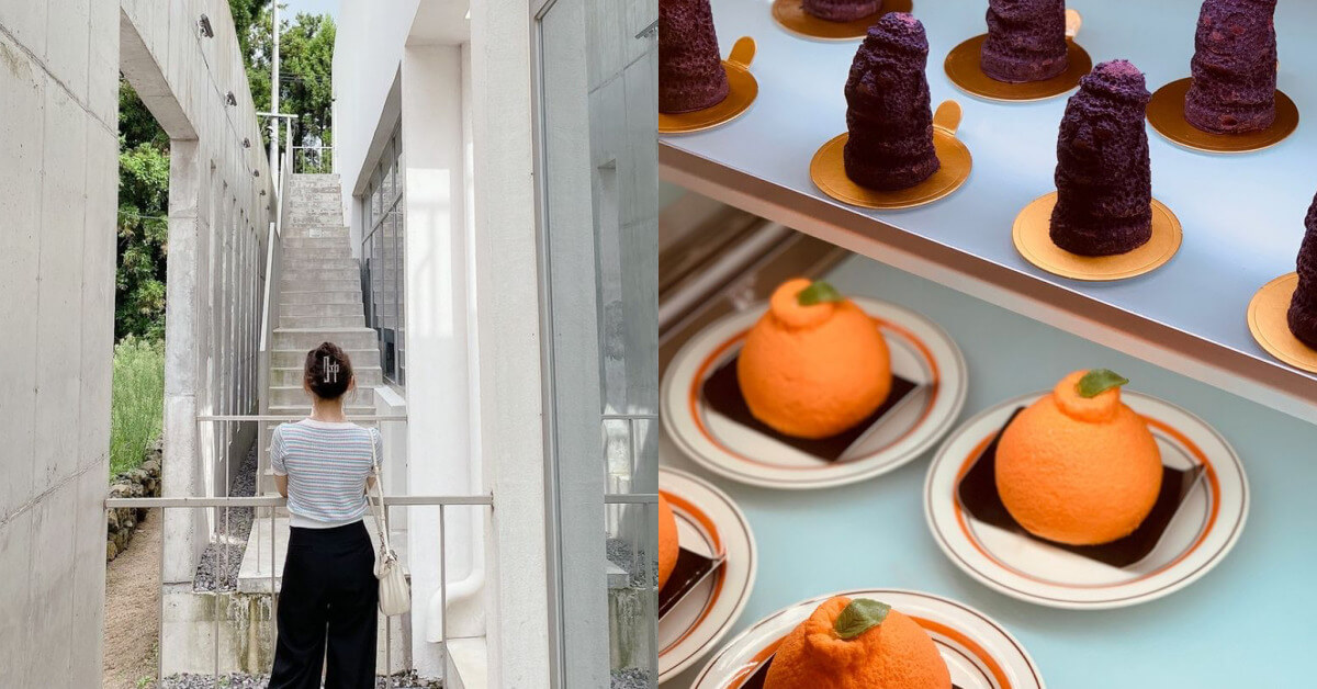 Andor Cafe的店內跟店外都有許多超好拍的打卡點,像是門口的清水模建築、水泥色的樓梯以及在森林旁的戶外空間都是很殺記憶體的超美打卡地點。而他們家的甜點品項也算是蠻有特色的,有橘子造型的甜點,也有濟州島最有名的石頭爺爺和萬丈窟熔岩形狀的蛋糕,絕對可以同時滿足吃貨與網美們拍照的心。