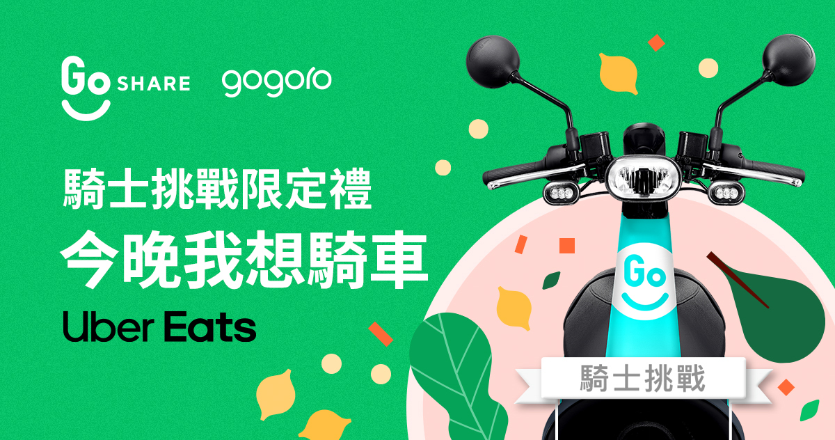 4/17 至 4/30,GoShare 用戶只要完成「今晚我想騎車」騎士挑戰(含 5 趟有效騎乘),即可獲得 GoShare $100 元騎乘金獎勵、Uber Eats $200 元優惠序號1。