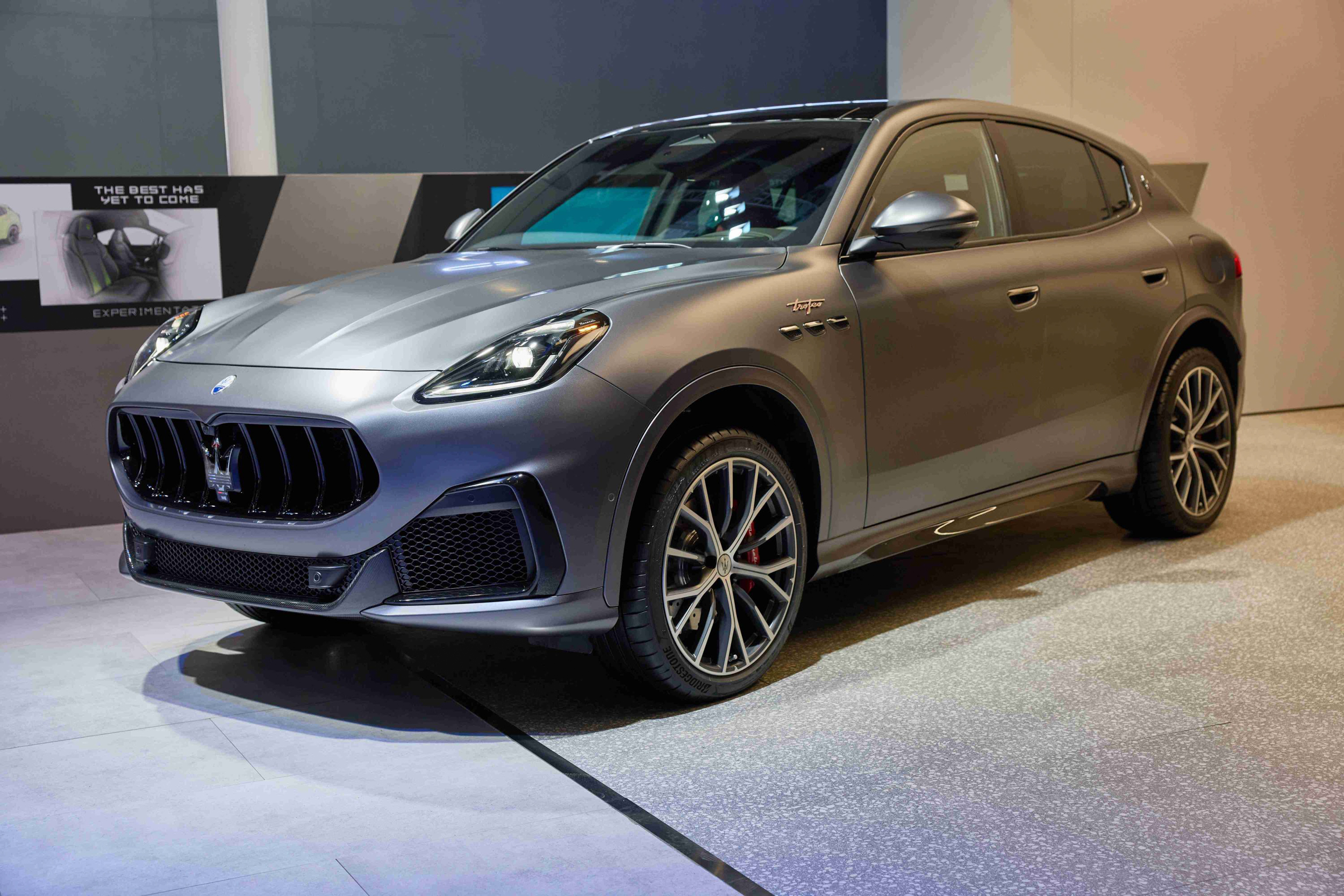 Maserati Grecale車款另一力作 – Grecale Trofeo SUV,專為運動車型的極致追求者而生。Trofeo版特別配置了21吋金屬輪圈,及專屬的運動排氣尾管,並於前後保險桿以及側裙配備了碳纖維套件,突顯個性魅力的同時,深度詮釋運動型格。搭載基於「Nettuno海王星」所開發的高性能V6引擎,可爆發高達530匹馬力。該款車型基於Maserati MC20的底盤域控制模組(CDCM)進行升級,並與動態控制系統結合,大大提升操控反應,不斷挑戰性能極限,最高時速可達285 km/h,以極致的性能表現和不斷挑戰自我的精神彰顯非凡神韻。此外,以熔岩灰金屬色漆(Grigio Lava Matte)增添個性配色的Grecale Trofeo SUV也於車展期間同步展出。