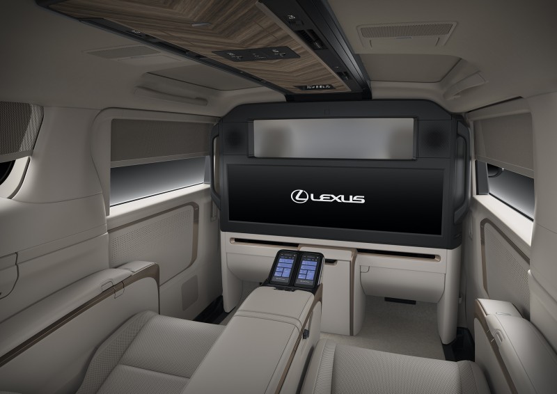 車尾的U型燈具展現現代化風格,動力系統也搭配了集團最新的科技。 駕駛艙的配置擁有新一代的車款特色,超大的車機螢幕讓操作更加便利,而在後座部分則是擁有三排座椅的6、7座選車,或者是更高級的四座配置,在四座的車型當中,前後排之間有著一道電視遮擋,這款電視尺寸來到48吋,採用了超寬比例設計,而在螢幕的上方也設有私密隔簾,必要時可以將後座打造成一個獨立的空間,此外螢幕下方也有著冰箱、儲物空間的設計,這些都採用了良好的裝潢讓視覺上更有一體性,確保整體的乘坐感受更加高級。