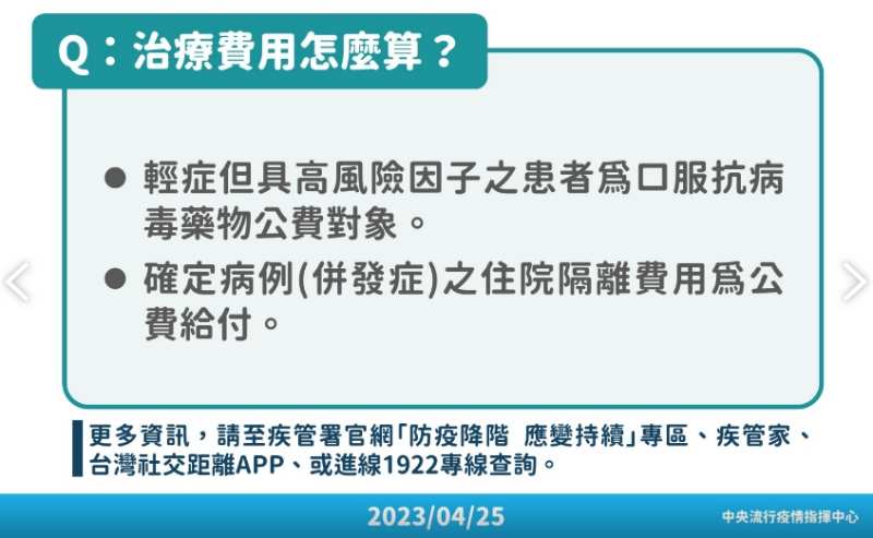 問題四 藥物、住院隔離費用仍是公費嗎?