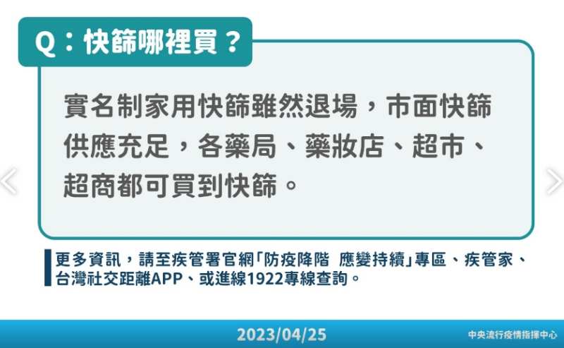 5月1日後,COVID-19改類、指揮中心解編,家用快篩試劑實名制也將一併退場,許多民眾想問之後如果需要進行快篩,快篩試劑夠嗎?又該去哪裡購買?