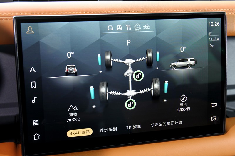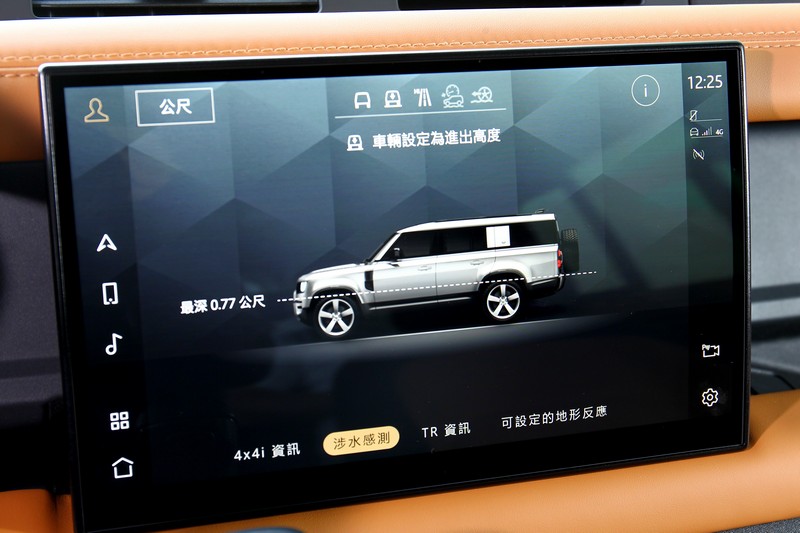 可從11.4吋中控螢幕中得知涉水深度、四輪驅動狀態等資訊。