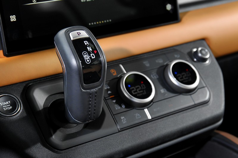 中央扶手置物空間具備冷藏功能。 Defender 130 X P400不僅擁有更長尺碼,坐進駕駛座即感受到難以親近居高臨下的氣勢,而動力也同樣有此感受,搭載的3.0升六缸輕油電渦輪引擎,能給予400hp最大馬力與56.1kgm最大扭力,和0~100km/h 6.6秒的加速表現。而在動力輔助下完全無視超過2.5噸的車重,不僅不會有重拖感受,甚至無須重踩就已有相當帶勁的加速表現,雖無運動模式可選,但切至S檔則會給予更敏捷的能量輸出反應。