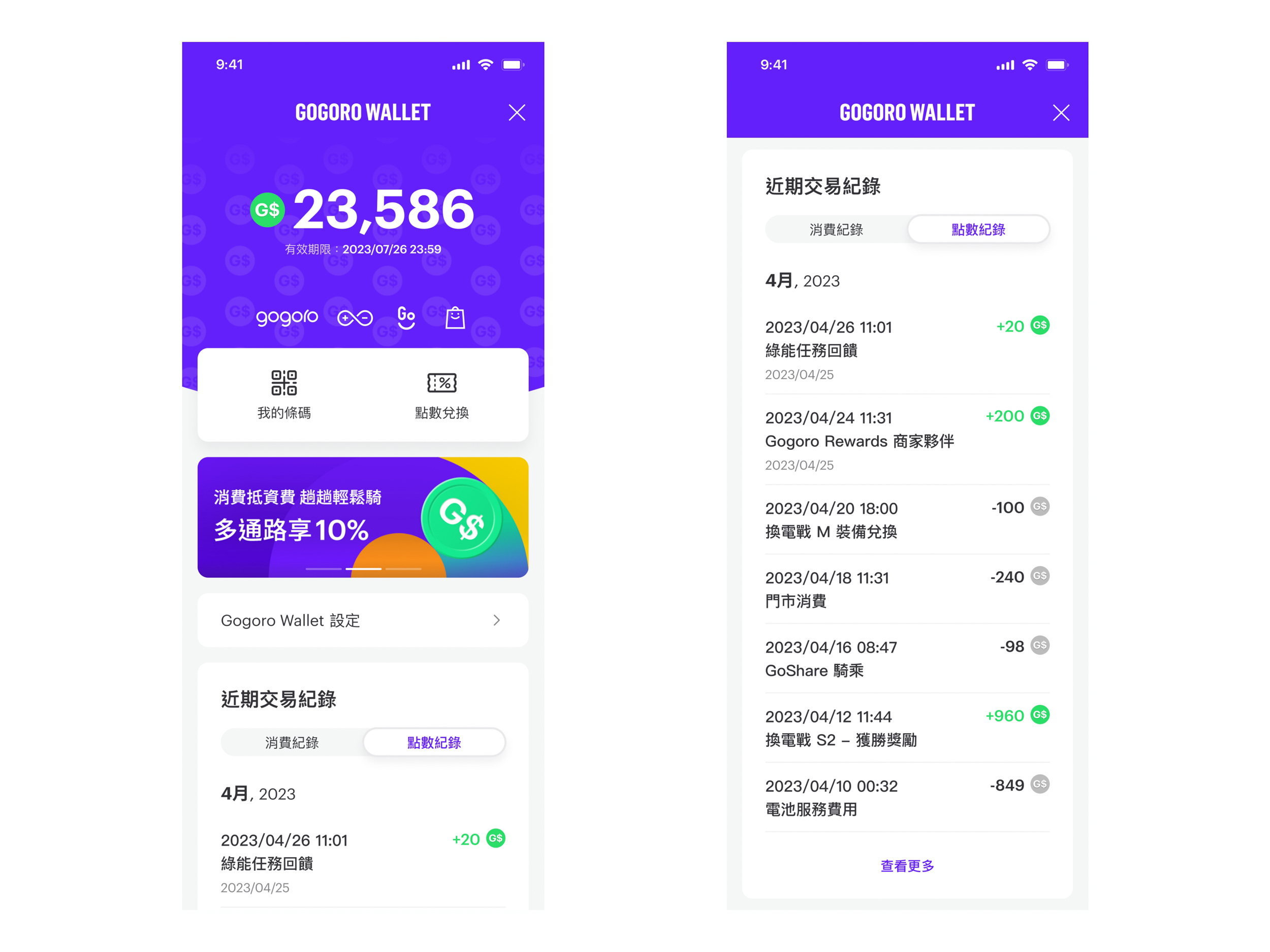 獲得點數後,用戶可用於直接折抵每月電池資費,購車、維修保養等 Gogoro 門市任意消費,以及每趟 GoShare 騎乘費用,或在 App 直接使用點數兌換網路商店購物金。1 點就等於 $1 元,點數越多,可折抵的金額就越多。