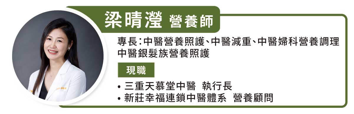 身兼營養師與中醫診所執行長的梁晴瀅表示,要了解中醫營養,先知道「陰陽」。中醫理論認為機體失健是陰陽失調所致,為消除病因,達到治療,其根本是恢復人體的陰陽平衡。《黃帝內經》提到:「調其陰陽,不足則補,有餘則瀉」,觀察陰陽氣血盛衰,不足就補充之,過多則消除之。