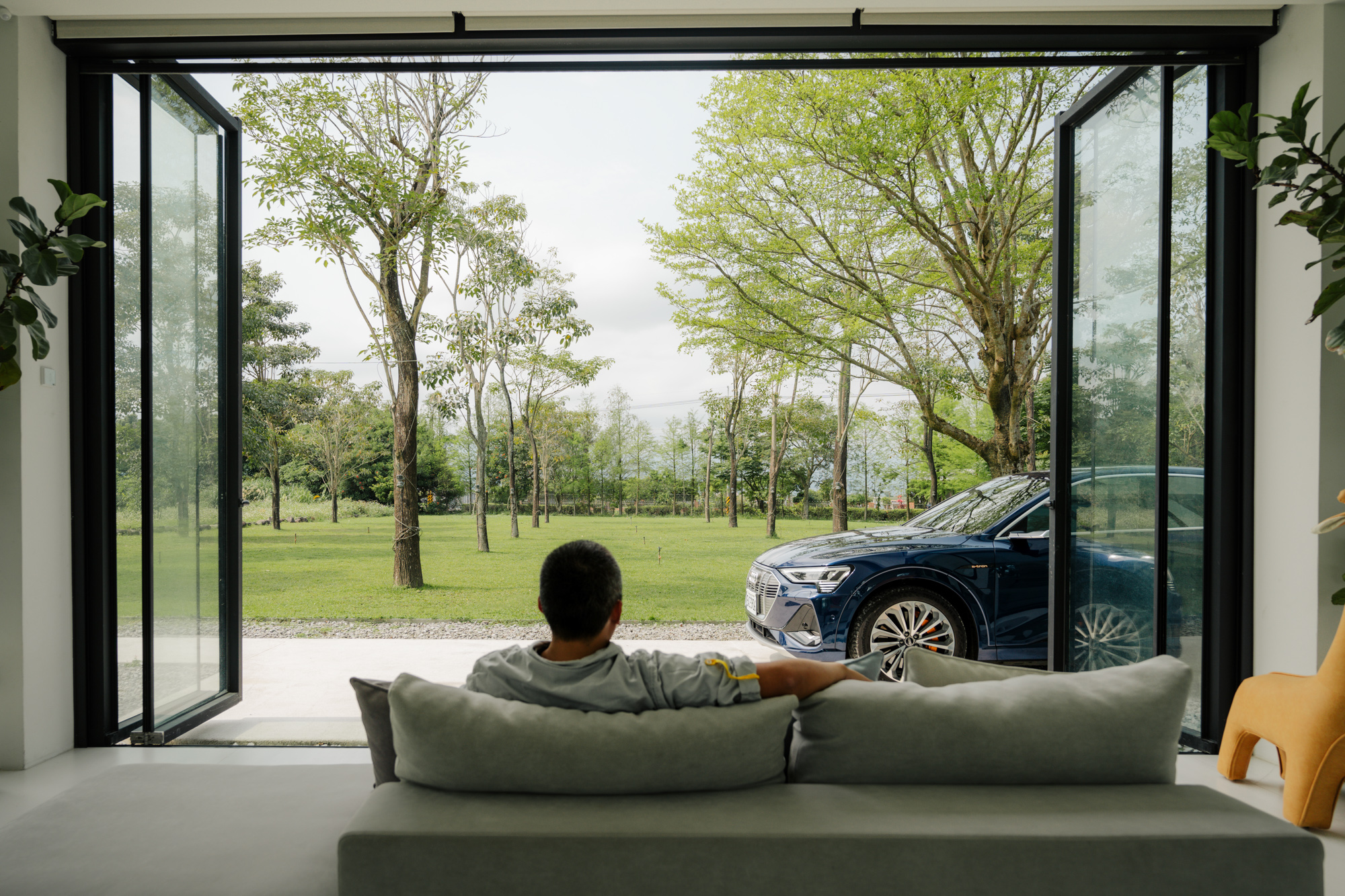 有意識地保留了寬闊的廣場空間,為的就是將兩人童年時在宜蘭長大、親近土地的記憶保留給下一代,Helen 說:「大自然是最好的百科,孩子從生活中感受到的快樂和純粹,不僅形塑了看待事物的方式,更從中看見自己內心一直在追逐的那份平靜。」大自然的明亮生機溢滿每一個角落,體現了德築獨特的生活美學。