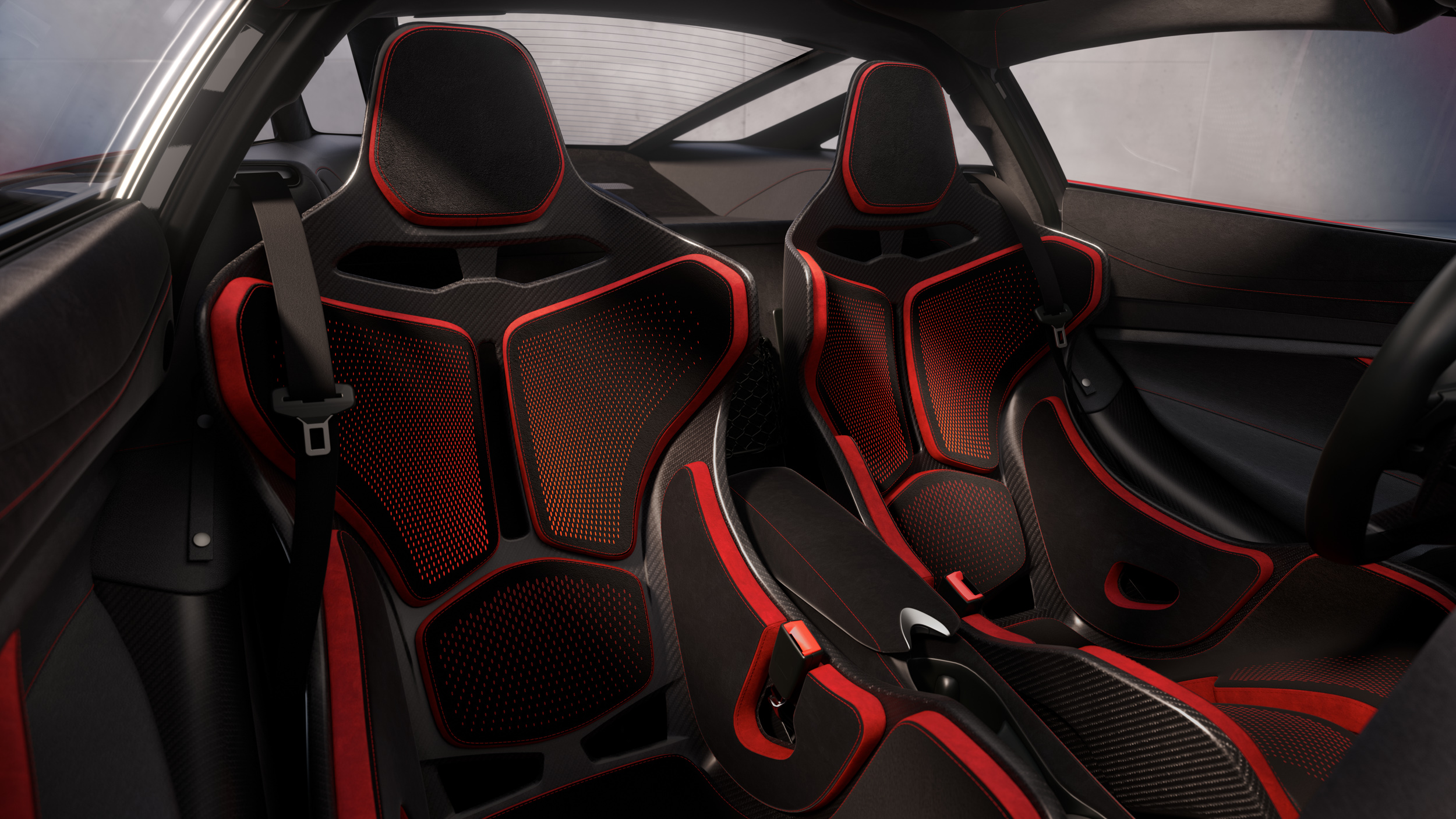 碳纖維單體結構創造近360度的全景視野,低伸的前檔結構、超薄A柱和透明玻璃C柱設計,有利於自然光進入車廂,並提供清晰的駕駛視野;專屬打造的環境氣氛燈在夜間仍可保有座艙設計細節,而750S Coupe可透過設置在後行李架上的雙層玻璃面板一覽V8引擎動力系統,充滿機械感與賽道熱血的細膩感受。