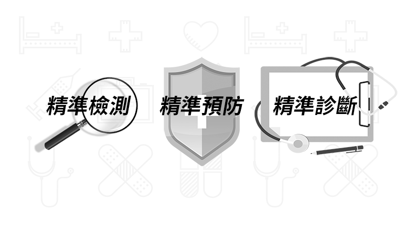 精準醫療可以分為「精準檢測」、「精準預防」、「精準診斷」三個面向去檢視。
