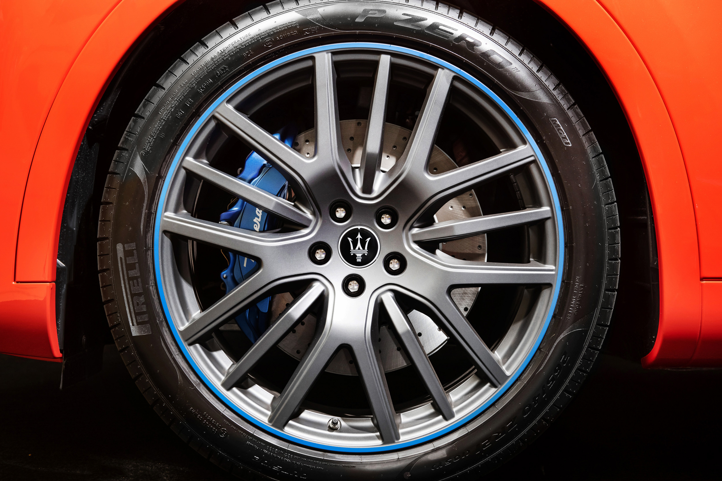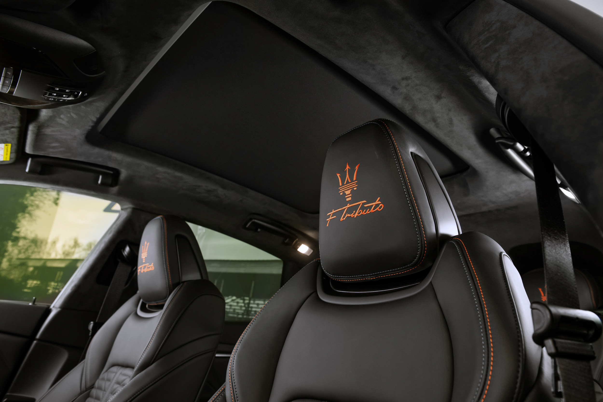 為進一步強化 Levante 的動感風範,全新 Levante Modena S 【F Tributo】 特別版配備了 21 英吋的 Anteo 啞光灰色輪圈,同時,在輪圈細節上、C 柱上的三叉戟 Logo 以及前方葉子板散熱鰭孔上的車型徽章均採用鈷藍色特殊點綴,彰顯特別版車型與眾不同的身份。而有別於外部塗裝的繽紛色彩,全新 Levante 【F Tributo】 特別版的內飾則採用黑色 Pieno Fiore 奢華全粒面皮革材質,飾以鈷藍色與橙色的對比縫線。