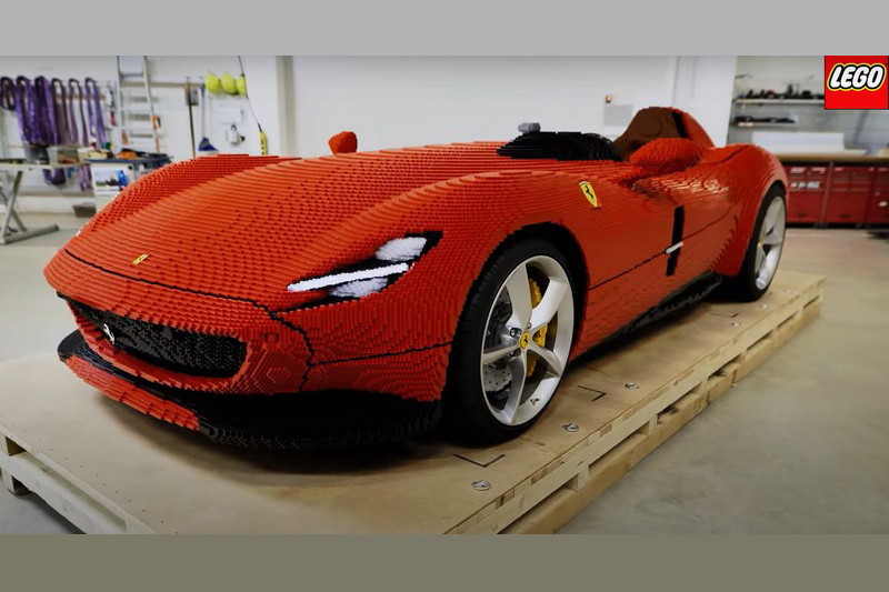 Lego在丹麥的樂高樂園展出1:1 Ferrari Monza SP1模型。 在此之前Lego就有推出過與實車同尺寸的1:1 F40模型,為了呈現1:1 Monza SP1,Lego團隊耗時超過1,400小時與383,610個積木才完成,全車除方向盤、圈胎與廠徽其餘全都由一個個積木組成,1:1的Ferrari Monza SP1模型除了各項細節處理細膩外,1,339公斤的重量也與實車相去不遠。