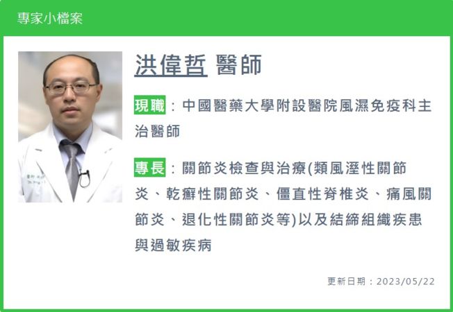 患者也切勿自行停藥造成病情惡化,建議可從事復健、散步及伸展活動,同時避免高強度運動,調整動作及作息、避免熬夜及壓力,也會讓疾病控制得更好。