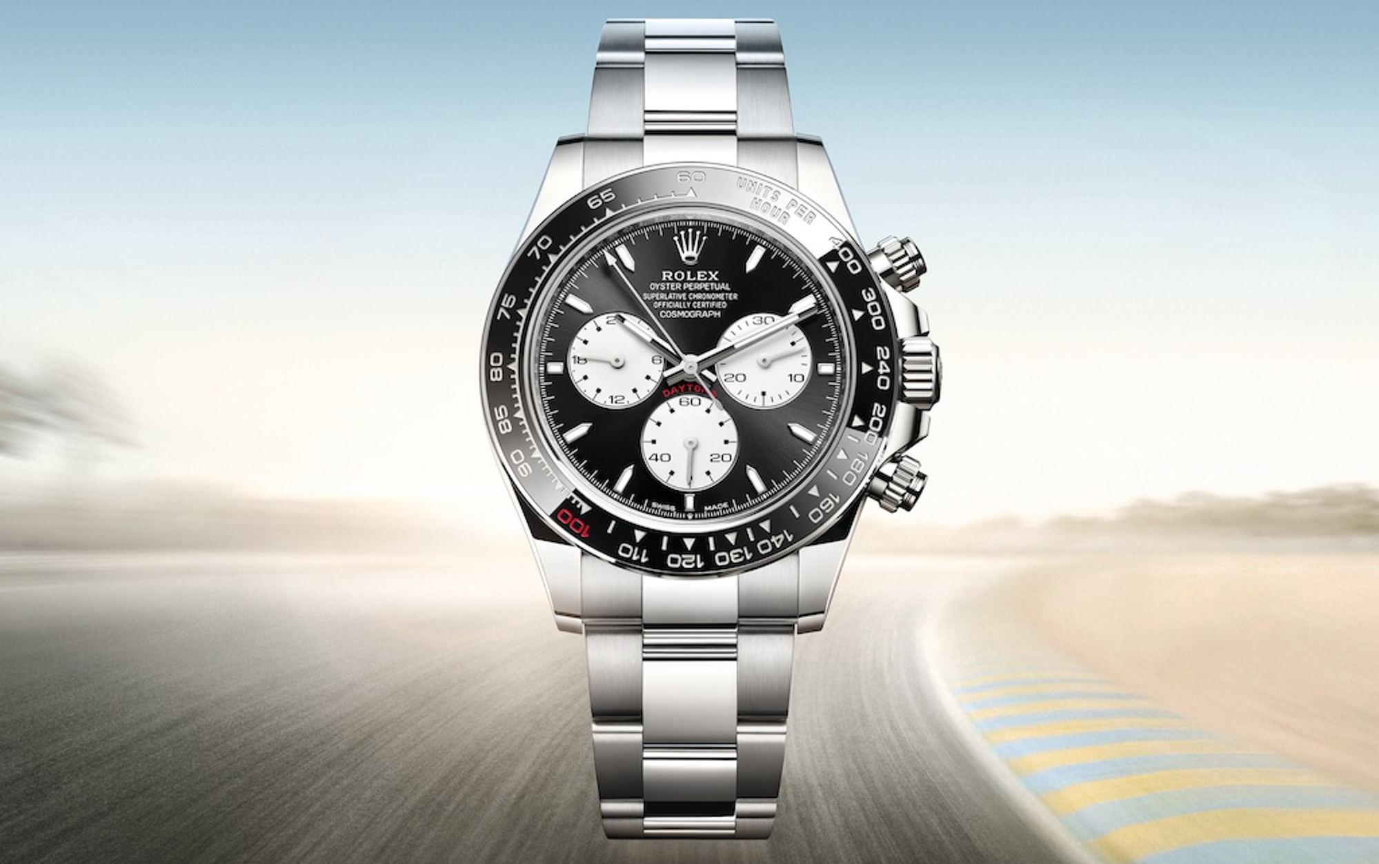 這款經典腕錶誕生於 1963 年,專為滿足職業車手的需要而設計。 Cosmograph Daytona 配備測速計外圈,以及全由勞力士研發製造的高性能機械機芯,這款傳奇計時腕錶成為理想的計速裝備, 可讀取在固定時間內行駛特定距離的平均速度。