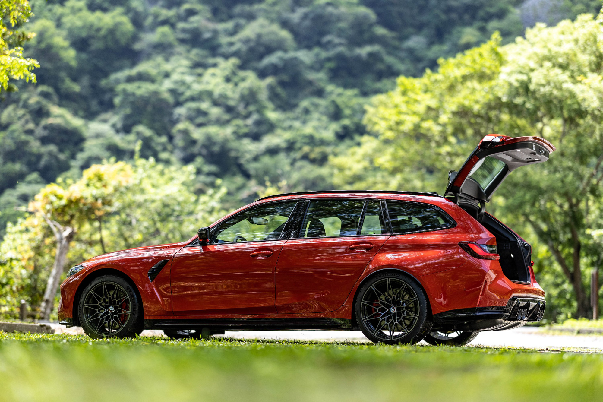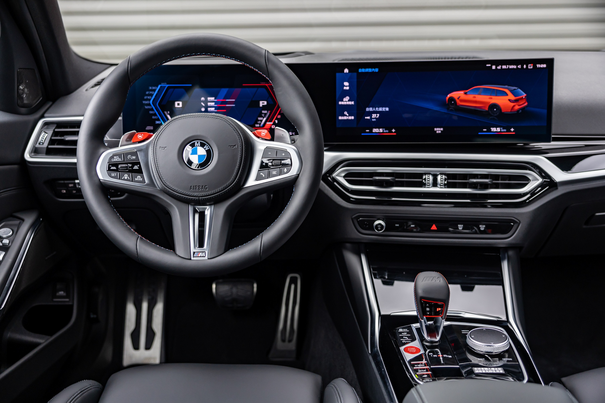 充滿競技氛圍的車室座艙,搭配 Merino 真皮 M 雙前座跑車座椅與發光的M3銘牌,含記憶、通風以及加熱功能,車主可選用同級唯一擁有的 M 碳纖維賽車桶型座椅。極具未來感的懸浮式曲面螢幕及全新 BMW iDrive 8.0 使用者互動介面,將M車手所需的車輛資訊以 BMW M 專屬的視覺設計與工具選項,清楚地呈現在 12.3 吋虛擬數位儀錶與 14.9 吋中控觸控螢幕上;M車況抬頭顯示器則結合 M 專屬介面及換檔指示燈,讓駕駛無論是日常行駛或馳騁賽道時皆能全心投入。BMW M3 Competition Touring 後座採用 40/20/40 分離可傾倒後座椅背,行李廂最大可達 1510 公升,結合後廂安全分隔網與後廂底板自動配備以及 BMW Touring 車型獨有的獨立開啟式後檔玻璃,為使用者在日常生活中增添絕佳實用性。