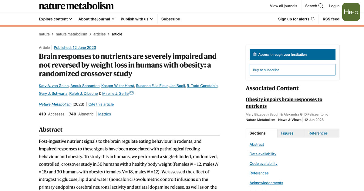 參考文獻:Brain responses to nutrients are severely impaired and not reversed by weight loss in humans with obesity: a randomized crossover study