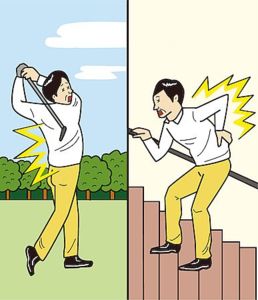 有腰背疼痛問題的中高年球友相當多,也許是揮桿扭轉上半身時會感覺怪怪的,或因長時間處理文書工作導致的痠痛。部分情形可以在患部塗抹藥物,或依狀況採取針灸與按摩治療。但有些狀況則不能這樣處理,特別如果是內臟疾病所導致的疼痛,就必須特別留意。