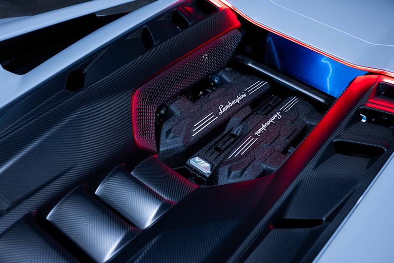 Revuelto以前所未見的動力架構、創新設計、高效空氣力學以及全新的碳纖維車臺結構概念,為動態性能和駕駛樂趣樹立嶄新標竿,其動力心臟是一具重新設計的6.5升V12自然進氣引擎,以 180度反向放置車身中後,與三組電動馬達相輔相成,強大的動力輸出成就優越的重量功率比。每升127 CV的內燃機引擎與兩個位於電動前軸的馬達協同運作,第三組馬達則與位於引擎後方首次應用於Lamborghini V12車型的8速雙離合變速器連結,三組電動馬達由位於中央馬鞍的高比功率 (> 4500 W/kg) 鋰電池供電,並支援純電模式行駛。