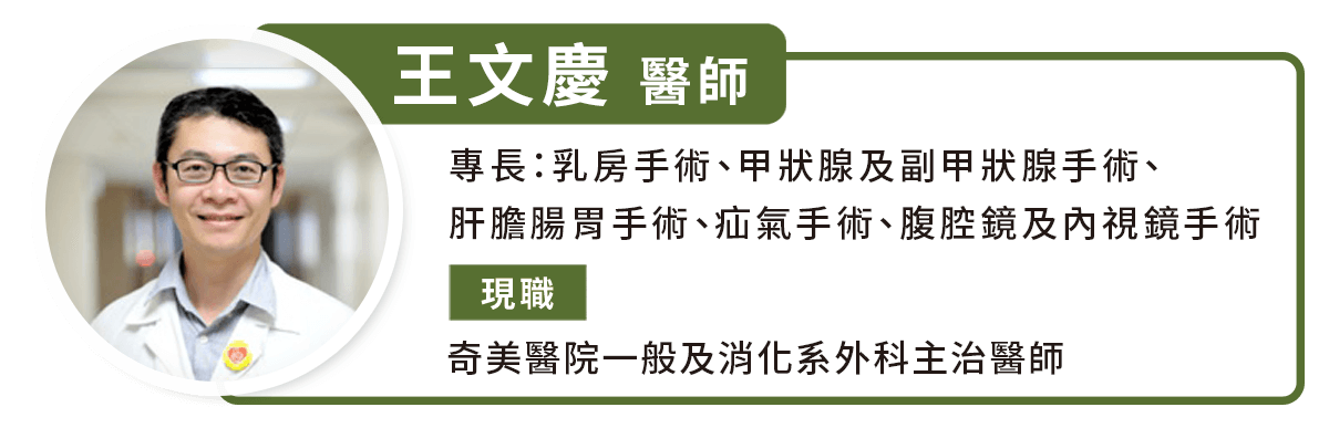 諮詢專家:奇美醫院一般及消化系外科主治醫師王文慶