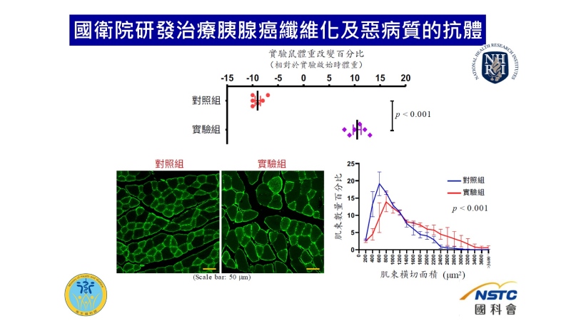 國衛院癌症研究所研究員黃智興表示,胰腺癌占胰臟癌約85%,不少患者確診時已是3、4期,5年存活率僅3%。腫瘤組織間質增生(desmoplasia)是腫瘤纖維化的主要原因之一,會造成患者出現多種惡病質(cancer cachexia)狀況。惡病質發生於70%癌患,包括肺腺癌、大直腸癌、肝細胞癌、胰腺癌、乳癌等諸多惡性腫瘤都具有此特徵。根據統計,全球有高達50~80%的胰腺癌患者就是因爲惡病質而死亡。- 體重降低