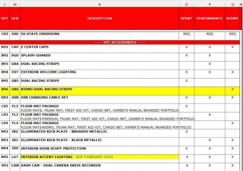 從最新的影片其實也可以看得出來這輛車搭載的是自排變速箱,因為方向盤後面有著換檔撥片,腳下也沒有離合器踏板就可以知道這並不是手排車型,雖然車迷們都一直希望可以有手排的配置,但是國外論壇現在有消息傳出並沒有這樣的選擇,不過這輛車預計將會使用3.0升雙渦輪增壓引擎,高達500匹的馬力相信會滿足車迷,此外Nissan Z Nismo的配色將會擁有灰、白、紅搭配黑色車頂以及鑽石珍珠黑,並且可以選擇賽車條紋外觀,但一切都還要等到正式發表才會真的確定了。
