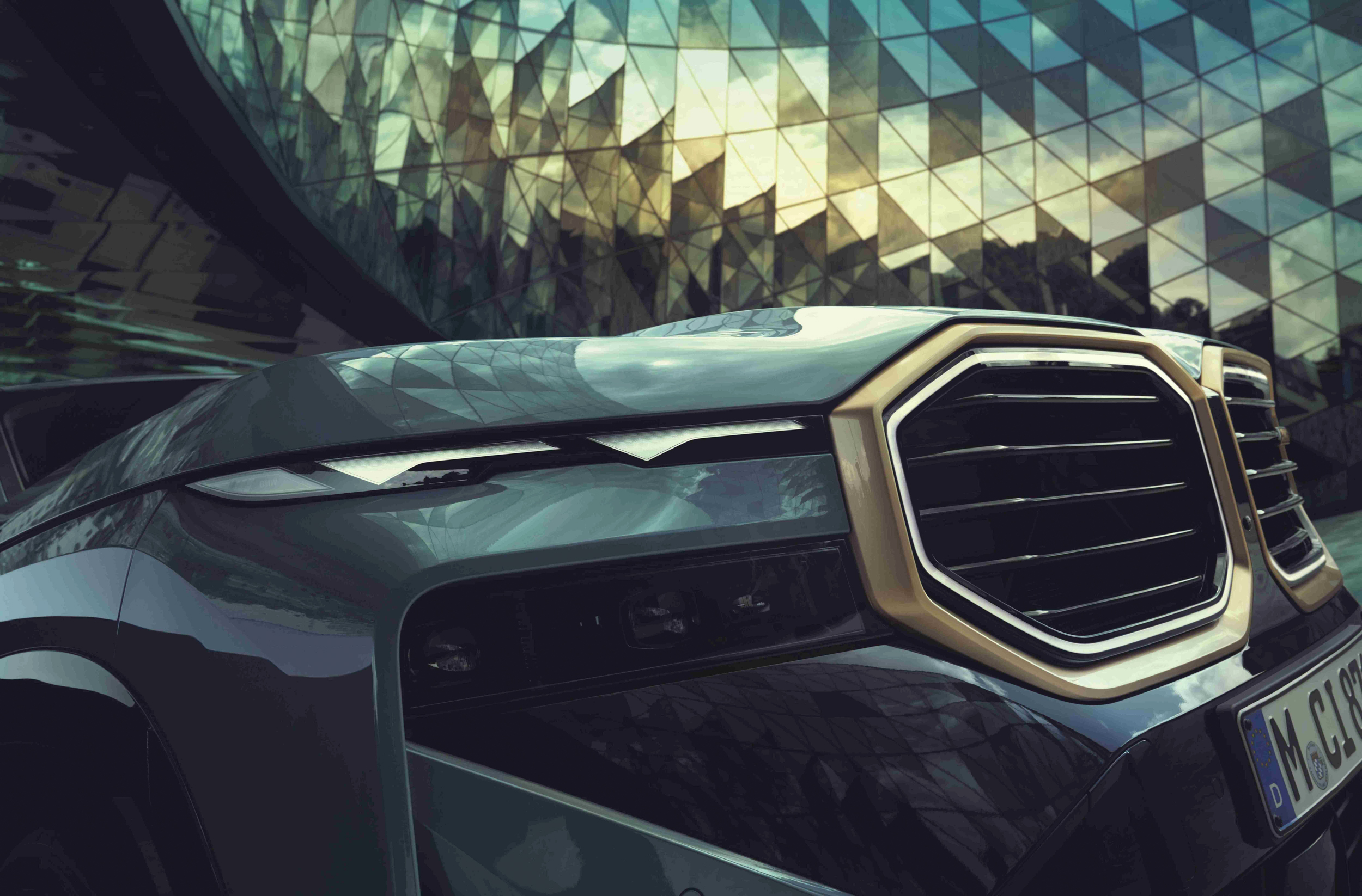 來自台灣的BMW Designworks 設計師 Boson Huang為BMW全球設計團隊帶入不同的設計視角,在以歐洲設計師為多數的國際級設計殿堂激盪美學思維,從藝術領域的畢卡索立體派風格獲得靈感,將立體派藝術創作中在靜止的畫作中呈現出動態的效果,轉化設計在車款靜止狀態時展現充滿動態力量的表現。全新首創BMW XM可以看見類似於立體派多邊形幾何構成的的車內空間設計與外觀設計,搭配車身現代新穎的折線與光影設計,將BMW強調動感前衛的新一代設計語言,和BMW引以為傲的性能動力嶄露無遺。全新首創BMW XM最吸睛出眾的特色之一就是霸氣而寬闊的雙腎型M橫柵式水箱護罩,以緞金色邊框圍繞搭配BMW LED環型飾光燈條,展現BMW XM強烈的磅礡氣勢與豪華跑旅領袖之姿。同樣以緞金色打造的車側風格飾條,自前輪拱上方延伸至車尾與窗框相接,承襲了最經典的BMW M1車身線條設計元素,標準配備全車系尺寸最大的專屬23吋M星輻式923 M型輪圈,搭配中央輪圈蓋上黑色立體BMW字樣造型,氣勢非凡無可匹敵。突破現有BMW車系的廠徽設計,BMW XM以雷射雕刻方式將雙BMW Logo放置於後擋玻璃左右上緣,目的即是向經典的BMW M1車尾造型致敬。