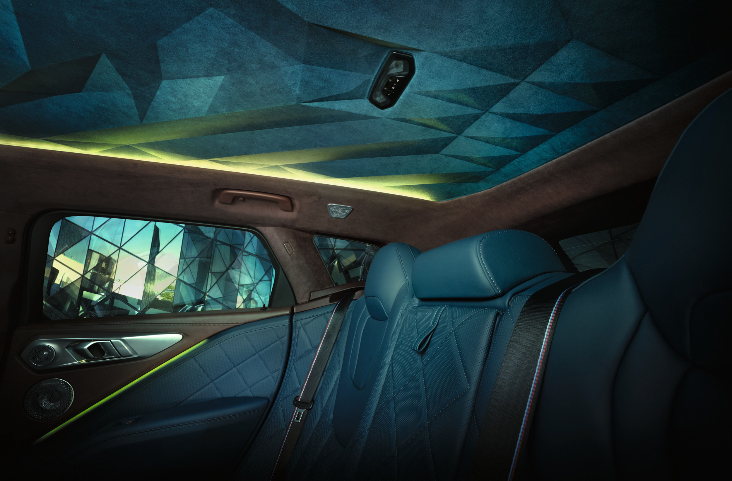 全新首創BMW XM不僅為駕駛帶來無限的駕馭樂趣,對於副駕駛座與後座的乘客更是提供了尊貴雍容的空間規劃與乘坐體驗,媲美頭等艙等級的M Lounge後座空間,寬闊同時加長深度的座椅使用BMW Individual Merino真皮包覆,柔軟富彈性的皮革一路延伸至車門,搭配BMW XM專屬的Alcantara麂皮靠枕,讓後座的乘客即使面對面倚靠車門對談依然輕鬆舒適。首次搭載於BMW車系的Alcantara光稜頂篷,可隨著環艙氣氛燈為車內座艙提供間接照明,為每一趟旅程增添絢麗而奢華的神秘感受。