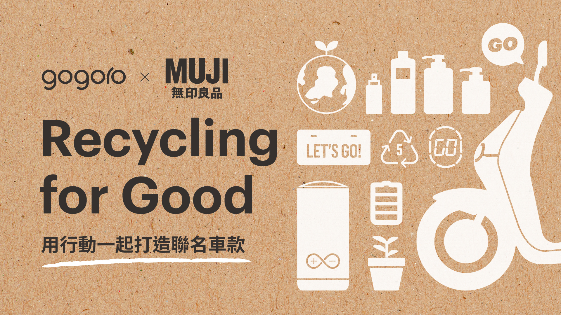 Gogoro 的永續藍圖與 MUJI 無印良品「對在地有所貢獻」的理念不謀而合,雙方響應今年世界環境日實踐再生與永續的主張,於今(29)日共同擴大舉辦「Recycling for Good」永續循環行動,呼籲大眾參與資源再生利用,讓細微改變成為守護地球的重要力量;更為二度聯名系列暖身,創造與生活、環境最適配的新車款。