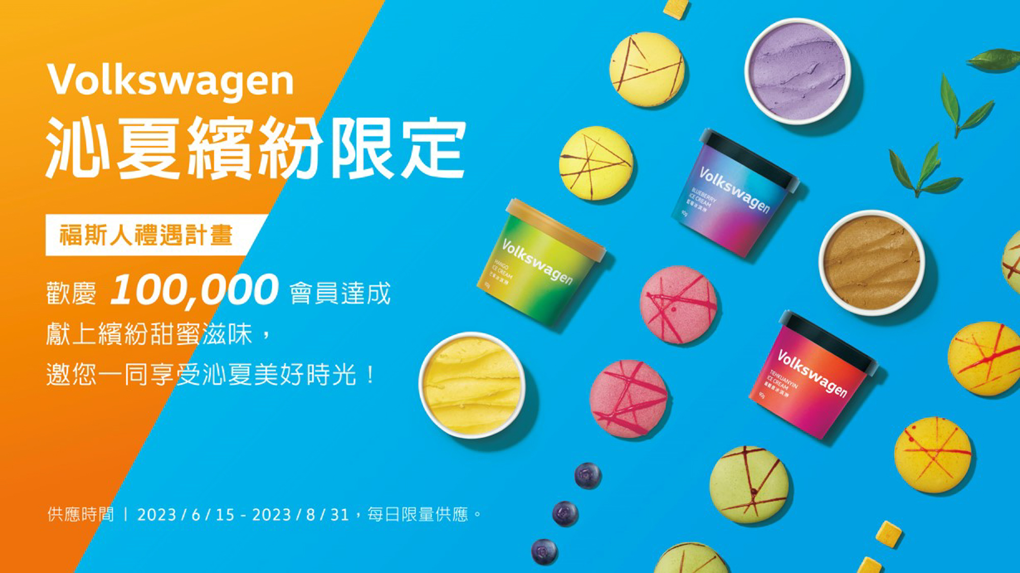 此四車款之車主可至活動頁面「打造我的展間」,留下與愛車美好回憶,而吸引最多消費者「預約試乘」的展間車主,可獲「人氣車主賞」或「家族團結賞」,享最高價值新台幣2萬元之獎項。消費者則可於活動頁面「預約試乘」,或「分享展間」至個人 Facebook 頁面,便能參加「預約試駕賞」和「分享有禮賞」抽獎活動。此外,凡預約回廠之車主和賞車試乘之消費者,可享用「Volkswagen Bar」繽紛馬卡龍與夏季限定冰品,與此同時,台灣福斯汽車帶來T-Family 德藝休旅購車優惠,下訂 T-Cross 可得「2 萬元購車金」及「2 次免費保養」,T-Roc、Tiguan 及 Touran 則附贈 「第 5 年延長保固」 及 「2 次免費保養」,敬請把握機會搶先入主,感受 Volkswagen 無以倫比的駕馭魅力