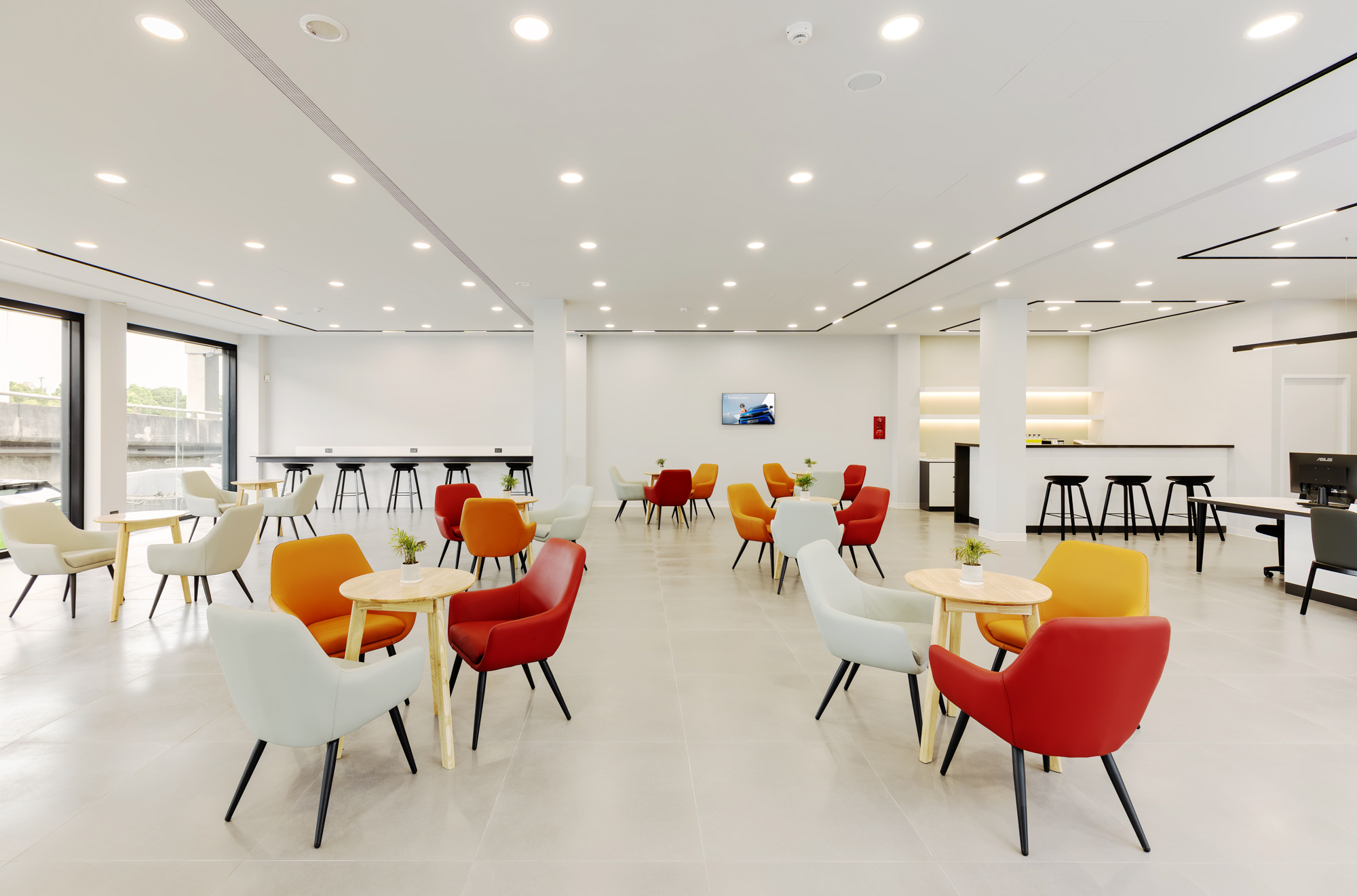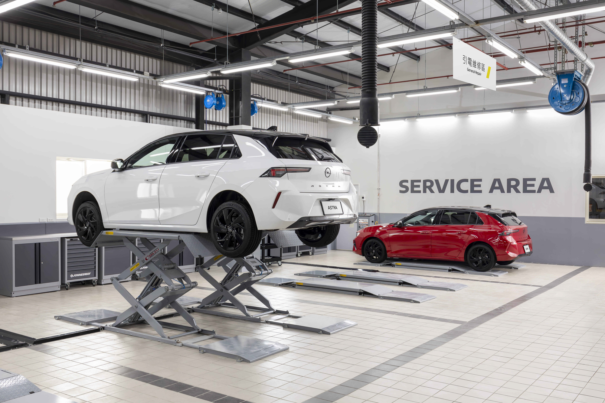 Opel 濱江服務中心採地上兩層規劃設計;一樓設置寬敞舒適的車主專屬客休區,大膽簡約的設計風格搭配長面落地大窗展現視覺高度與引進充足採光,打造出具有簡約自然且讓人放鬆的溫馨空間。 另外導入 Opel 車主專屬交車室,藉由專屬的獨立空間,讓整個交車過程更加舒適及隱密,讓車主享有獨一無二的尊榮體驗。服務中心二樓則規劃為引電維修工位及零件倉庫,其中共設有 6 個工位,包括 4 部專業級頂高機、診斷智能工作位、電動車輛工作位等配置,並全面採用符合德國原廠規範指定的維修工具設備和輔助機具。