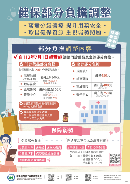 【健康醫療網/記者鄭宜芬報導】7月1日多項新制上路,其中包含健保門診藥費、急診部分負擔調漲,推估約845萬人會受影響。究竟健保部分負擔新制有什麼改變、哪些人不受影響?《健康醫療網》為您整理如下: