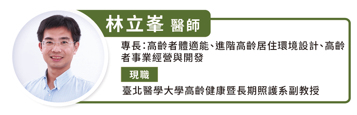 諮詢專家:台北醫學大學高齡健康暨長期照護系副教授林立峯