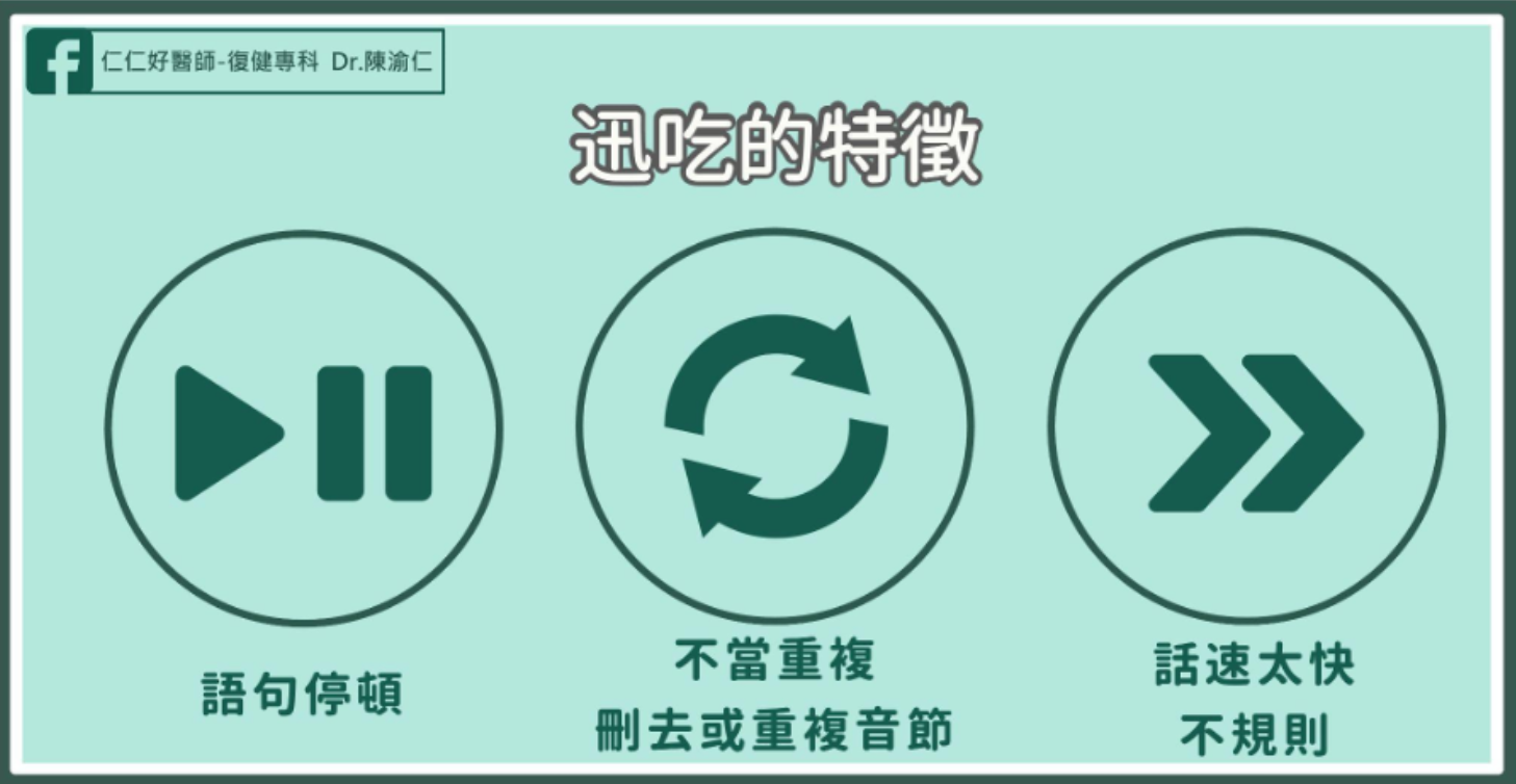 陳渝仁說明,語言病理學認為口吃與迅吃是兩種不同的語言流暢度障礙,口吃的特色是語句會有許多非自主的打斷,例如重複音節、聲音拉長等,明顯感覺語句不流暢且有失去控制的感覺,因此也容易被發現。迅吃則是說話感覺像是清楚的,較易被忽略。研究發現,孩子常常會同時有口吃與迅吃,也因而增加診斷的難度。