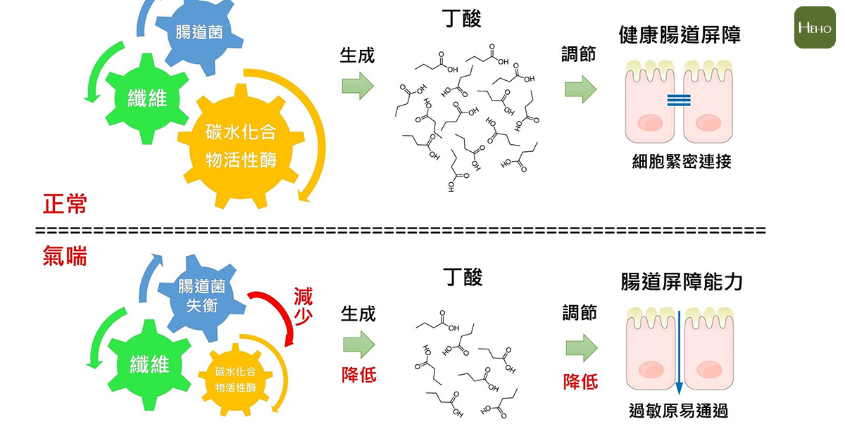從過往研究中已發現,「腸道微生物」會影響免疫系統的發育和調節,進而改變兒童對過敏原的反應。這次的研究成果則是更加佐證,「當活性酶基因的數量和豐富度降低,減少食物中膳食纖維碳水化合物的消化和代謝能力,可能進一步影響丁酸的產生和腸道屏障過敏原能力的降低,對腸道健康和免疫功能產生嚴重的影響,進而增加氣喘過敏的風險。」邱志勇解釋道。