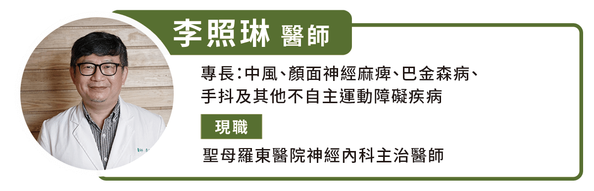 通常病人到門診報到時,往往已出現明顯的「動作症狀」,例如因肌肉顫抖和關節僵直造成行動困難,拿不起東西、容易在行走時失衡跌倒、或突然動不了,因面部僵直也會有面具臉或流口水的狀況;而「非動作症狀」就例如嚴重失眠、情緒起伏不定、悶悶不樂、嗅覺喪失、便祕等。上述症狀都會影響到日常生活,但若能及早用藥物治療,其實有機會讓疾病停留在早期階段,李照琳強調:「巴金森病是可以控制的,依據症狀的表現、病人狀況,量身打造合適的藥物治療策略,病人仍可以很有尊嚴、保有生活品質。」